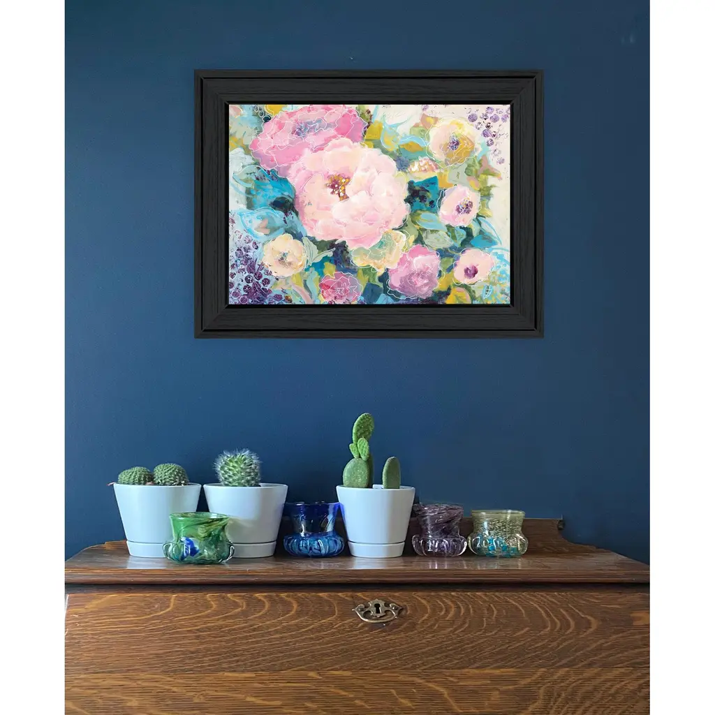"Fresh Florals" is by Artisan Jennifer Holden. This features a framed wall art. Let your mind wander among these Abstract Purple Flowers Our products are proudly made by skilled American workers. The surface of our framed art is textured with a fade resistant coating, so no glass is necessary. A vegetable-based glue is used in the production of our products, and our frames are crafted from 100% recycled material, in keeping with our environmentally friendly approach toward manufacturing. Arrives ready to hang. Crafted with utmost care and precision by skilled American crafters, this artwork is a testament to their unwavering commitment to quality. Each brushstroke exudes passion and dedication, bringing the scene to life in vivid detail. The fade-resistant texture coating ensures that the vibrant colors will remain intact, preserving the canvas-like appearance for years to come. Investing in a piece that is truly one-of-a-kind. No other artwork can capture the same blend of tranquility, elegance, and wanderlust. It is a testament to your discerning taste and appreciation for the beauty that nature and art can conjure together. Brought to you by Continents Apart.