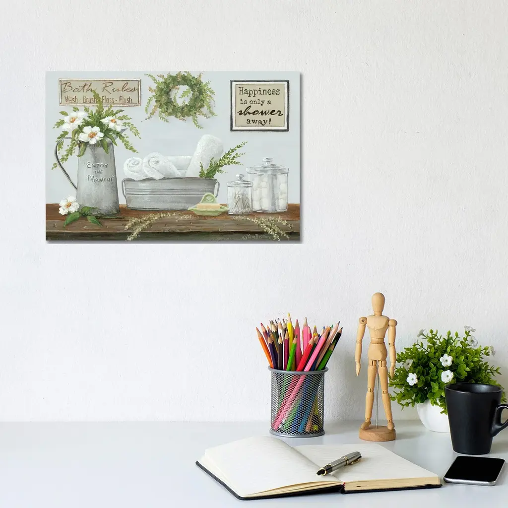 "Fresh Towels" is by Artisan Pam Britton. Happiness is only a Shower away! Take a fresh towel and relax and enjoy your time. Our products are proudly made by skilled American workers. The surface of our framed art is textured with a fade resistant coating, so no glass is necessary. A vegetable-based glue is used in the production of our products, and our frames are crafted from 100% recycled material, in keeping with our environmentally friendly approach toward manufacturing. Arrives ready to hang. Crafted with utmost care and precision by skilled American crafters, this artwork is a testament to their unwavering commitment to quality. Each brushstroke exudes passion and dedication, bringing the scene to life in vivid detail. The fade-resistant texture coating ensures that the vibrant colors will remain intact, preserving the canvas-like appearance for years to come. Investing in a piece that is truly one-of-a-kind. No other artwork can capture the same blend of tranquility, elegance, and wanderlust. It is a testament to your discerning taste and appreciation for the beauty that nature and art can conjure together. Brought to you by Continents Apart.