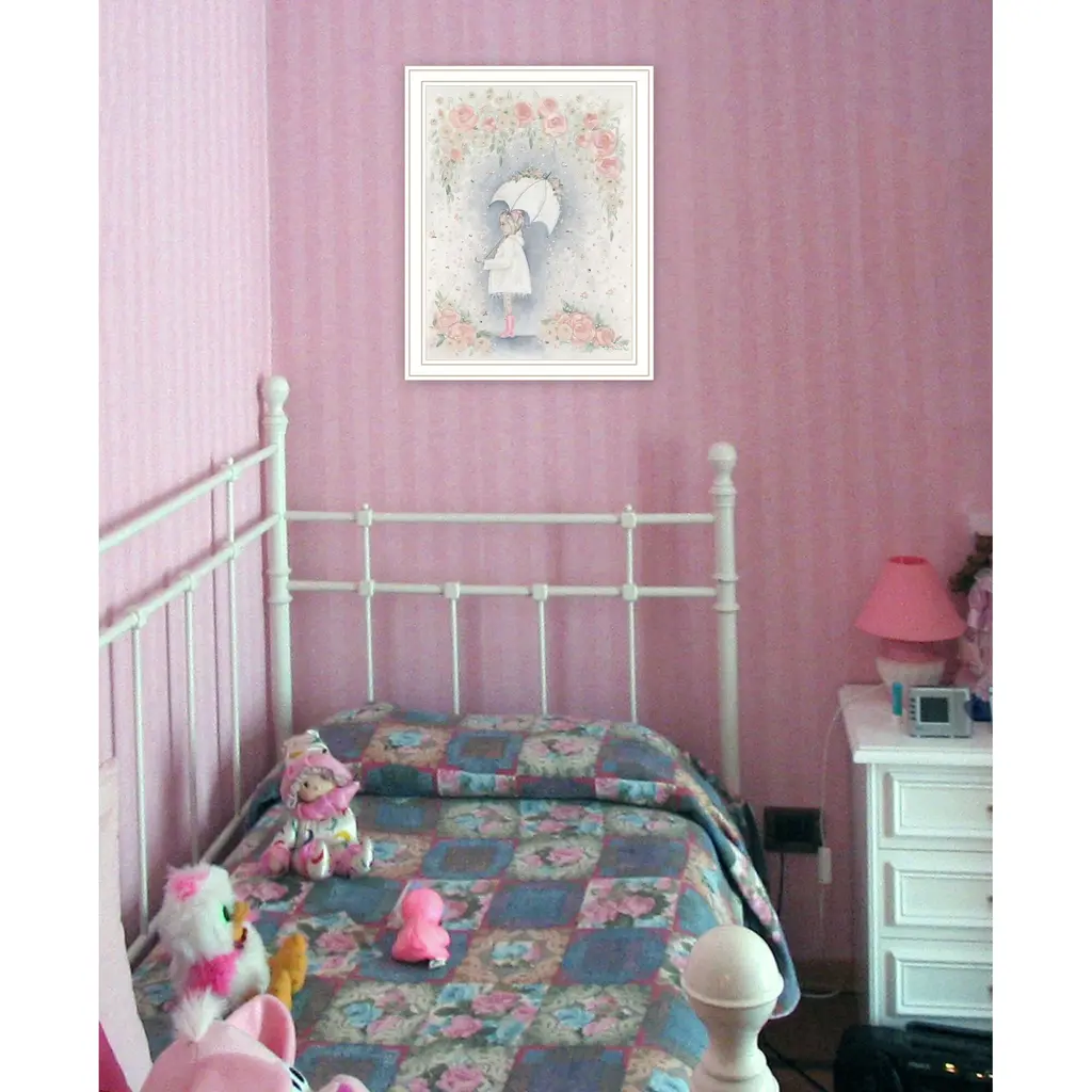 "Georgia In The Rain" is by Artisan Hollihocks Art . This features a 14"X18" framed wall art. A precious little girl dressed in her raincoat, rain boots, and umbrella. The little girl is surrounded by pink and white flowers. Our products are proudly made by skilled American workers. The surface of our framed art is textured with a fade resistant coating, so no glass is necessary. A vegetable-based glue is used in the production of our products, and our frames are crafted from 100% recycled material, in keeping with our environmentally friendly approach toward manufacturing. Arrives ready to hang. Crafted with utmost care and precision by skilled American crafters, this artwork is a testament to their unwavering commitment to quality. Each brushstroke exudes passion and dedication, bringing the scene to life in vivid detail. The fade-resistant texture coating ensures that the vibrant colors will remain intact, preserving the canvas-like appearance for years to come. Investing in a piece that is truly one-of-a-kind. No other artwork can capture the same blend of tranquility, elegance, and wanderlust. It is a testament to your discerning taste and appreciation for the beauty that nature and art can conjure together. Brought to you by Continents Apart.