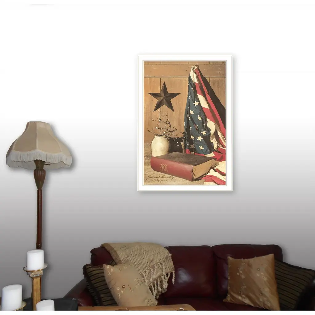 Trendydecor4u Contemporary "God And Country" Framed Print Wall Art By Billy Jacobs - White