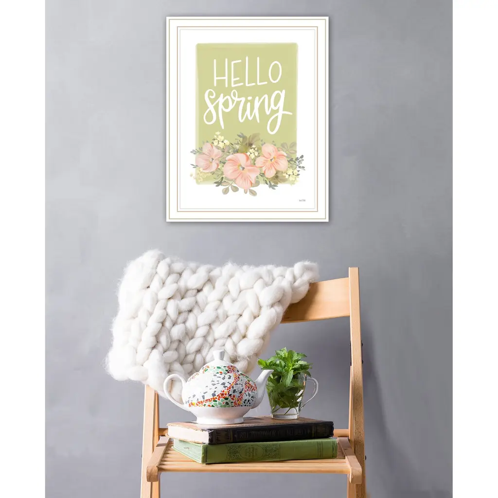 Trendydecor4u Contemporary "Hello Spring Floral" Framed Print Wall Art - White