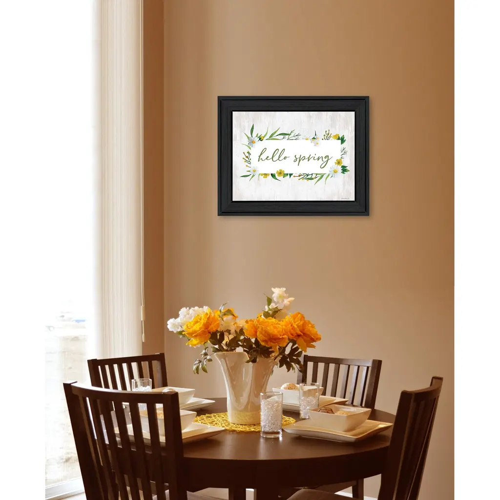Trendydecor4u Contemporary "Hello Spring" Framed Print Wall Art - Charcoal