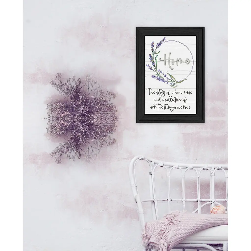 "Home a Circle of Love" is by Artisan Susie Boyer. This framed wall art has a white Shiplap background with a decorative circle of lavender flowers and the script HOME. The story of who we are and a collection of all the things we love. Our products are proudly made by skilled American workers. The surface of our framed art is textured with a fade resistant coating, so no glass is necessary. A vegetable-based glue is used in the production of our products, and our frames are crafted from 100% recycled material, in keeping with our environmentally friendly approach toward manufacturing. Arrives ready to hang. Crafted with utmost care and precision by skilled American crafters, this artwork is a testament to their unwavering commitment to quality. Each brushstroke exudes passion and dedication, bringing the scene to life in vivid detail. The fade-resistant texture coating ensures that the vibrant colors will remain intact, preserving the canvas-like appearance for years to come. Investing in a piece that is truly one-of-a-kind. No other artwork can capture the same blend of tranquility, elegance, and wanderlust. It is a testament to your discerning taste and appreciation for the beauty that nature and art can conjure together. Brought to you by Continents Apart.