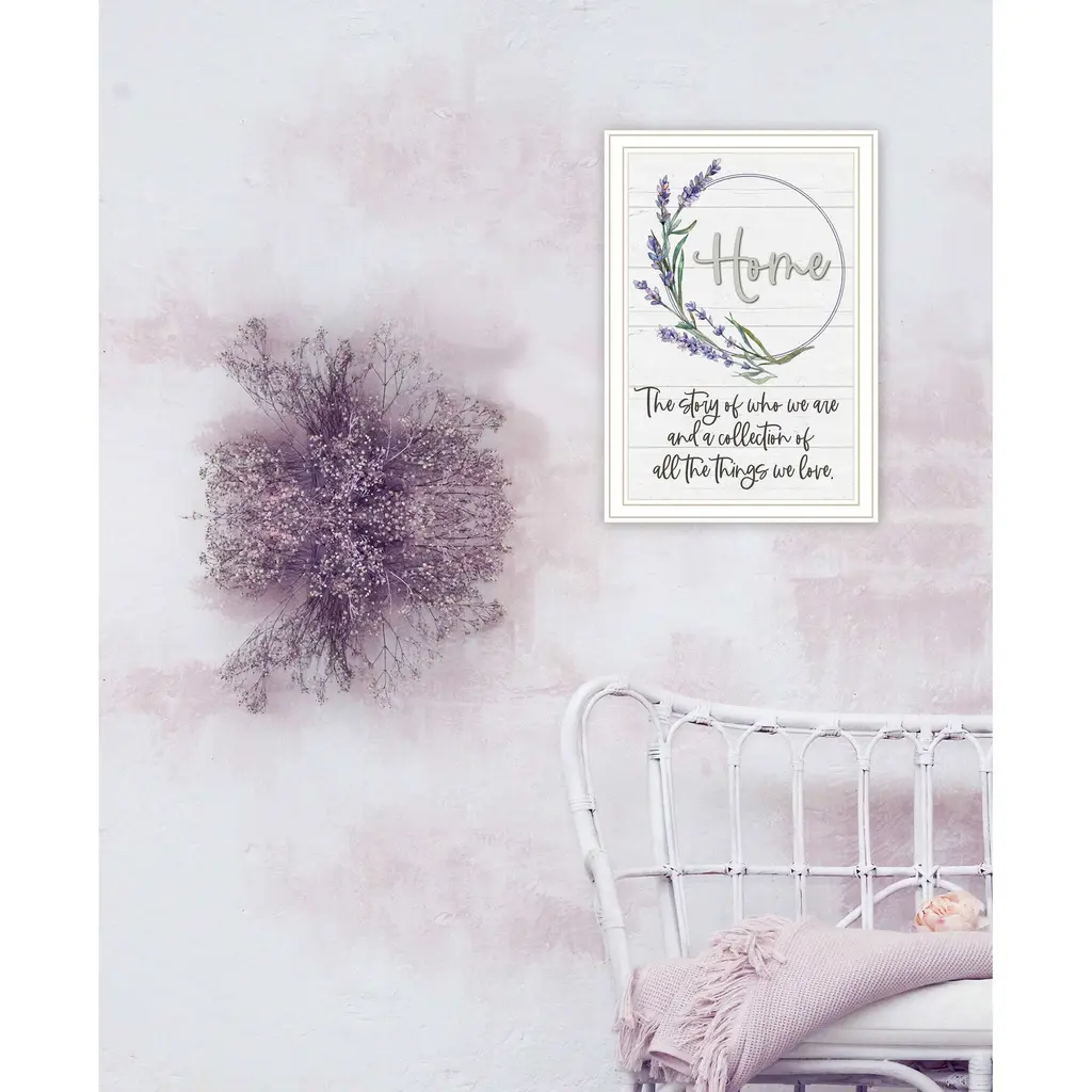 "Home a Circle of Love" is by Artisan Susie Boyer. This framed wall art has a white Shiplap background with a decorative circle of lavender flowers and the script HOME. The story of who we are and a collection of all the things we love. Our products are proudly made by skilled American workers. The surface of our framed art is textured with a fade resistant coating, so no glass is necessary. A vegetable-based glue is used in the production of our products, and our frames are crafted from 100% recycled material, in keeping with our environmentally friendly approach toward manufacturing. Arrives ready to hang. Crafted with utmost care and precision by skilled American crafters, this artwork is a testament to their unwavering commitment to quality. Each brushstroke exudes passion and dedication, bringing the scene to life in vivid detail. The fade-resistant texture coating ensures that the vibrant colors will remain intact, preserving the canvas-like appearance for years to come. Investing in a piece that is truly one-of-a-kind. No other artwork can capture the same blend of tranquility, elegance, and wanderlust. It is a testament to your discerning taste and appreciation for the beauty that nature and art can conjure together. Brought to you by Continents Apart.