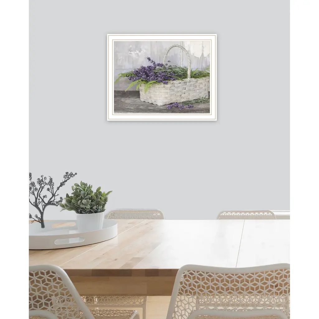 "My Lavender" is by Artisan Lori Deiter. This features a framed wall art. A basket full of posies brighten anyone's day. Our products are proudly made by skilled American workers. The surface of our framed art is textured with a fade resistant coating, so no glass is necessary. A vegetable-based glue is used in the production of our products, and our frames are crafted from 100% recycled material, in keeping with our environmentally friendly approach toward manufacturing. Arrives ready to hang. Crafted with utmost care and precision by skilled American crafters, this artwork is a testament to their unwavering commitment to quality. Each brushstroke exudes passion and dedication, bringing the scene to life in vivid detail. The fade-resistant texture coating ensures that the vibrant colors will remain intact, preserving the canvas-like appearance for years to come. Investing in a piece that is truly one-of-a-kind. No other artwork can capture the same blend of tranquility, elegance, and wanderlust. It is a testament to your discerning taste and appreciation for the beauty that nature and art can conjure together. Brought to you by Continents Apart.