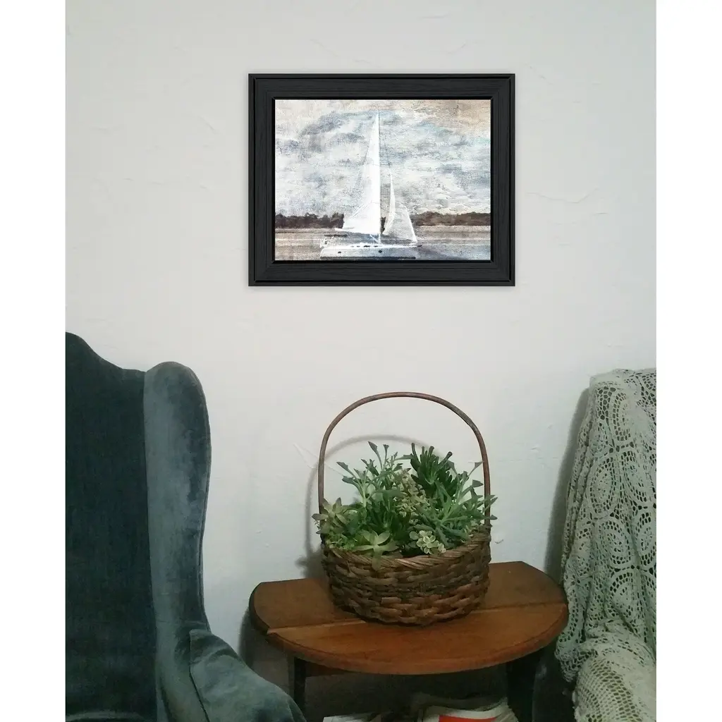 "Sailboat on Water" is by Artisan Bluebird Barn. This framed abstract print of a sailboat featured on the ocean in foggy conditions. Our products are proudly made by skilled American workers. The surface of our framed art is textured with a fade resistant coating, so no glass is necessary. A vegetable-based glue is used in the production of our products, and our frames are crafted from 100% recycled material, in keeping with our environmentally friendly approach toward manufacturing. Arrives ready to hang. Crafted with utmost care and precision by skilled American crafters, this artwork is a testament to their unwavering commitment to quality. Each brushstroke exudes passion and dedication, bringing the scene to life in vivid detail. The fade-resistant texture coating ensures that the vibrant colors will remain intact, preserving the canvas-like appearance for years to come. Investing in a piece that is truly one-of-a-kind. No other artwork can capture the same blend of tranquility, elegance, and wanderlust. It is a testament to your discerning taste and appreciation for the beauty that nature and art can conjure together. Brought to you by Continents Apart.