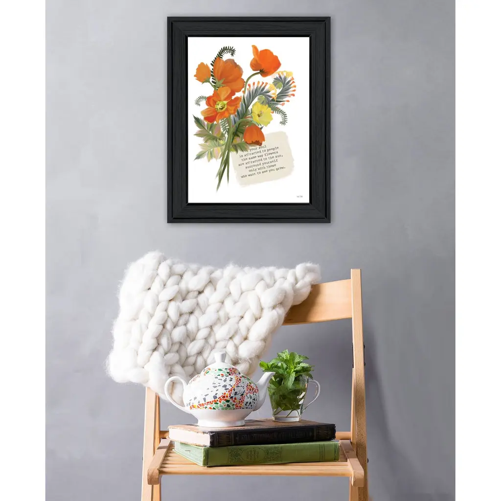 "See You Grow" is by Artisan House Fenway. This features a framed wall art. Your Soul is attracted to people the same way flowers are attracted to the sun, surround yourself ONLY with those who want to see you grow. Our products are proudly made by skilled American workers. The surface of our framed art is textured with a fade resistant coating, so no glass is necessary. A vegetable-based glue is used in the production of our products, and our frames are crafted from 100% recycled material. In keeping with our environmentally friendly approach toward manufacturing. Arrives ready to hang. Crafted with utmost care and precision by skilled American crafters, this artwork is a testament to their unwavering commitment to quality. Each brushstroke exudes passion and dedication, bringing the scene to life in vivid detail. The fade-resistant texture coating ensures that the vibrant colors will remain intact, preserving the canvas-like appearance for years to come. Investing in a piece that is truly one-of-a-kind. No other artwork can capture the same blend of tranquility, elegance, and wanderlust. It is a testament to your discerning taste and appreciation for the beauty that nature and art can conjure together. Brought to you by Continents Apart.
