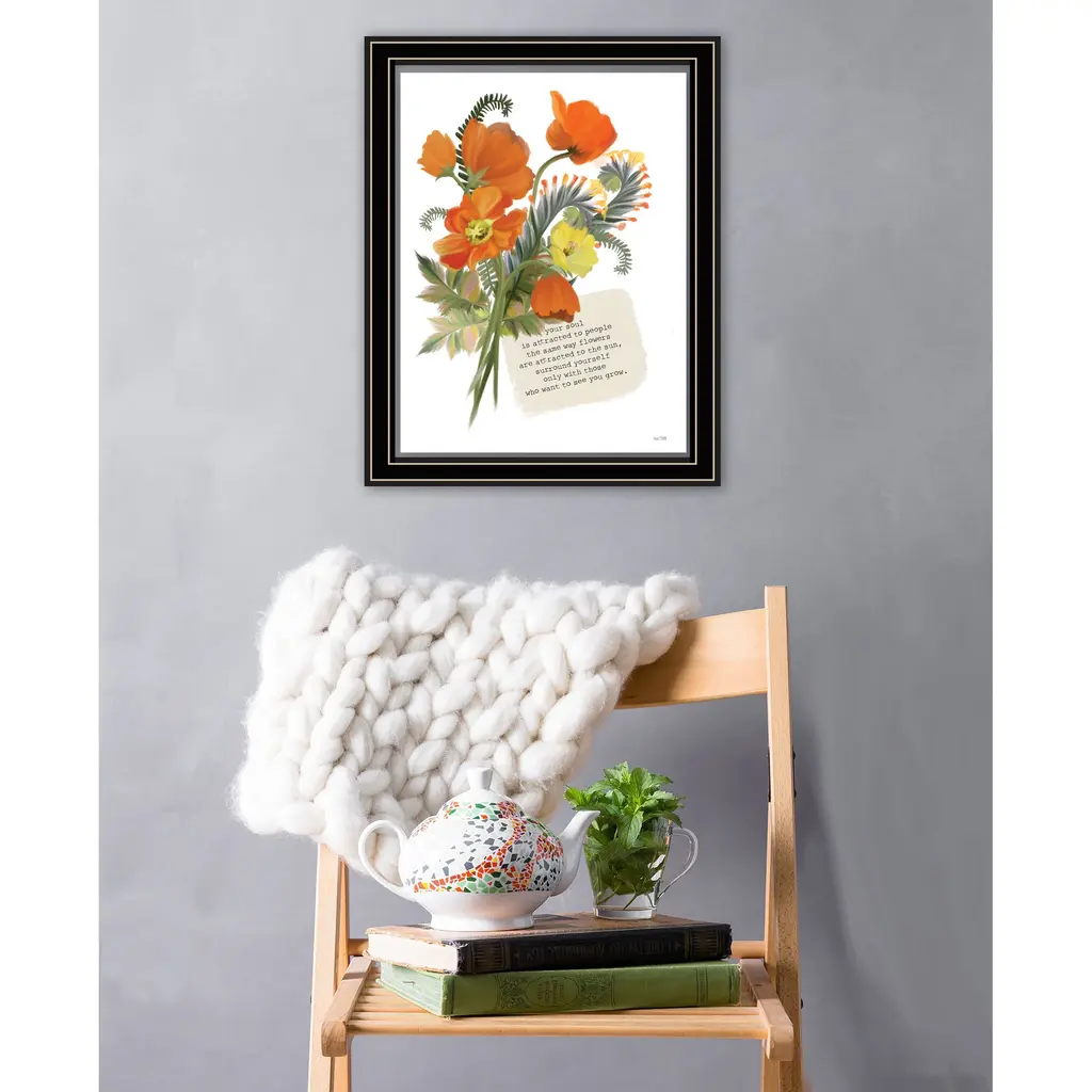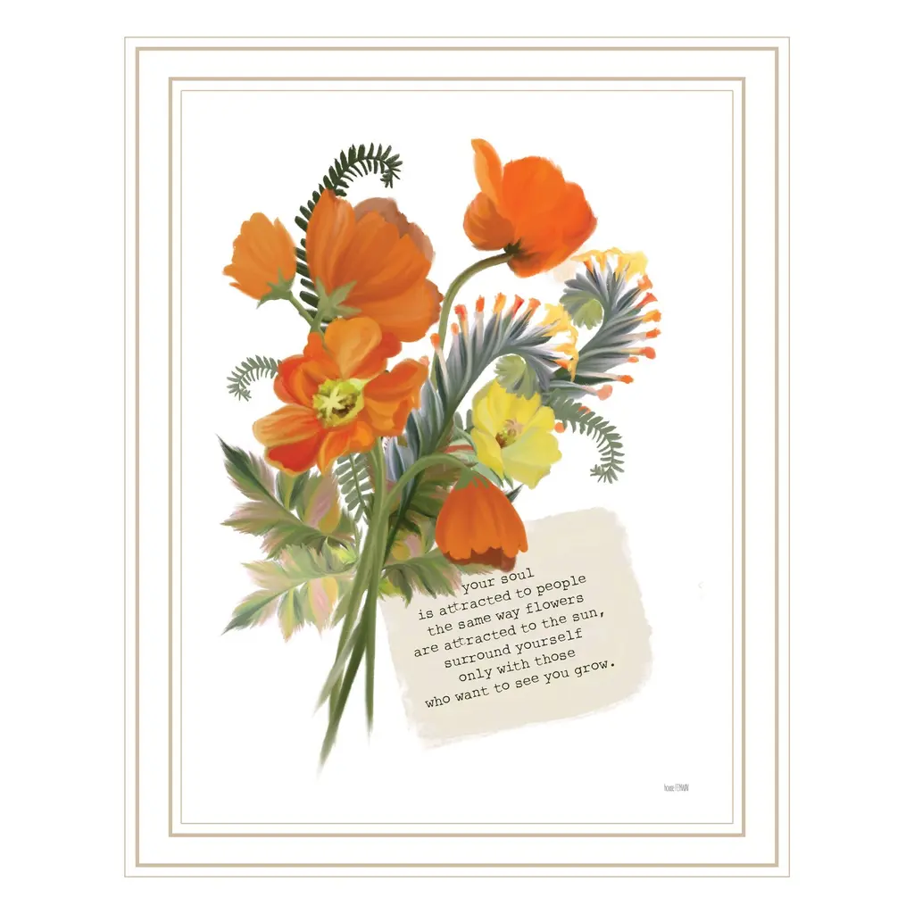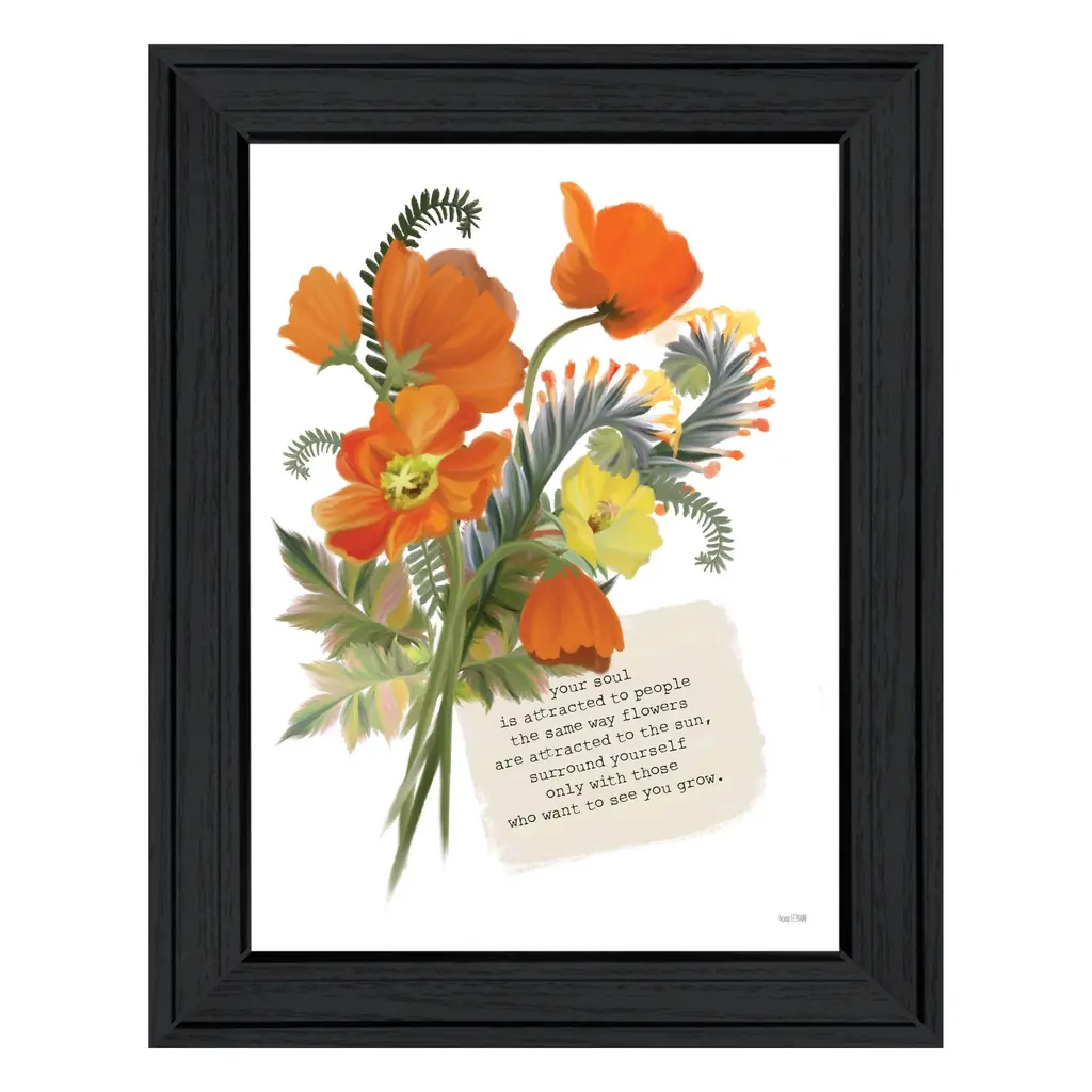 "See You Grow" is by Artisan House Fenway. This features a framed wall art. Your Soul is attracted to people the same way flowers are attracted to the sun, surround yourself ONLY with those who want to see you grow. Our products are proudly made by skilled American workers. The surface of our framed art is textured with a fade resistant coating, so no glass is necessary. A vegetable-based glue is used in the production of our products, and our frames are crafted from 100% recycled material. In keeping with our environmentally friendly approach toward manufacturing. Arrives ready to hang. Crafted with utmost care and precision by skilled American crafters, this artwork is a testament to their unwavering commitment to quality. Each brushstroke exudes passion and dedication, bringing the scene to life in vivid detail. The fade-resistant texture coating ensures that the vibrant colors will remain intact, preserving the canvas-like appearance for years to come. Investing in a piece that is truly one-of-a-kind. No other artwork can capture the same blend of tranquility, elegance, and wanderlust. It is a testament to your discerning taste and appreciation for the beauty that nature and art can conjure together. Brought to you by Continents Apart.