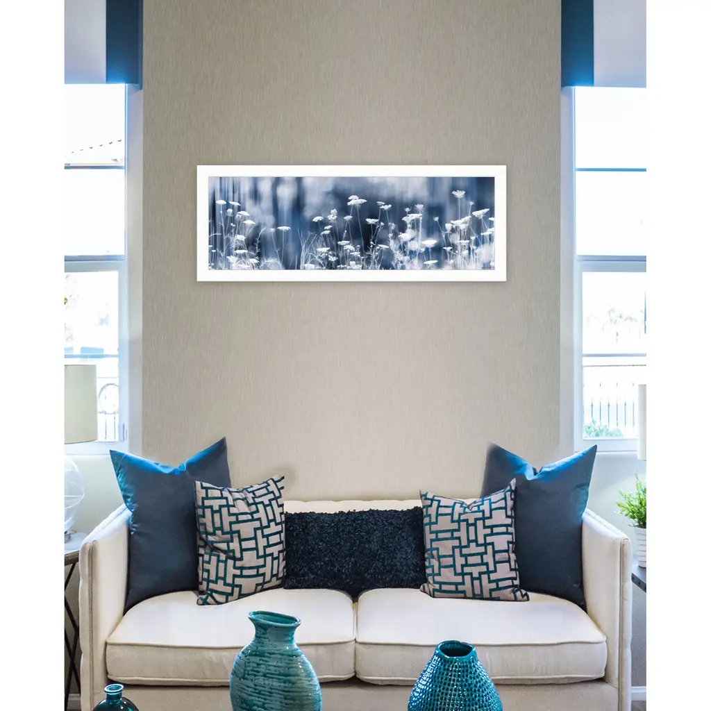 "Summer Dreams" is by Artisan Lori Deiter. A field of wildflowers, Queen Anne's Lace in a blue and white background Our products are proudly made by skilled American workers. The surface of our framed art is textured with a fade resistant coating, so no glass is necessary. A vegetable-based glue is used in the production of our products, and our frames are crafted from 100% recycled material, in keeping with our environmentally friendly approach toward manufacturing. Arrives ready to hang. Crafted with utmost care and precision by skilled American crafters, this artwork is a testament to their unwavering commitment to quality. Each brushstroke exudes passion and dedication, bringing the scene to life in vivid detail. The fade-resistant texture coating ensures that the vibrant colors will remain intact, preserving the canvas-like appearance for years to come. Investing in a piece that is truly one-of-a-kind. No other artwork can capture the same blend of tranquility, elegance, and wanderlust. It is a testament to your discerning taste and appreciation for the beauty that nature and art can conjure together. Brought to you by Continents Apart.