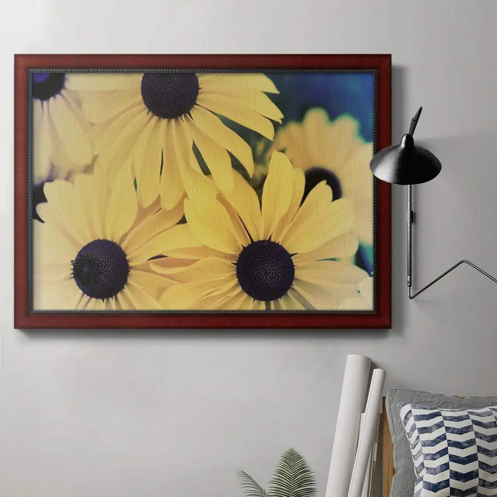 "Sunflower Portrait " is by Artisan JG Studio. Beauty at its finest -bouquet of sunflower Our products are proudly made by skilled American workers. The surface of our framed art is textured with a fade resistant coating, so no glass is necessary. A vegetable-based glue is used in the production of our products, and our frames are crafted from 100% recycled material, in keeping with our environmentally friendly approach toward manufacturing. Arrives ready to hang. Crafted with utmost care and precision by skilled American crafters, this artwork is a testament to their unwavering commitment to quality. Each brushstroke exudes passion and dedication, bringing the scene to life in vivid detail. The fade-resistant texture coating ensures that the vibrant colors will remain intact, preserving the canvas-like appearance for years to come. Investing in a piece that is truly one-of-a-kind. No other artwork can capture the same blend of tranquility, elegance, and wanderlust. It is a testament to your discerning taste and appreciation for the beauty that nature and art can conjure together. Brought to you by Continents Apart.