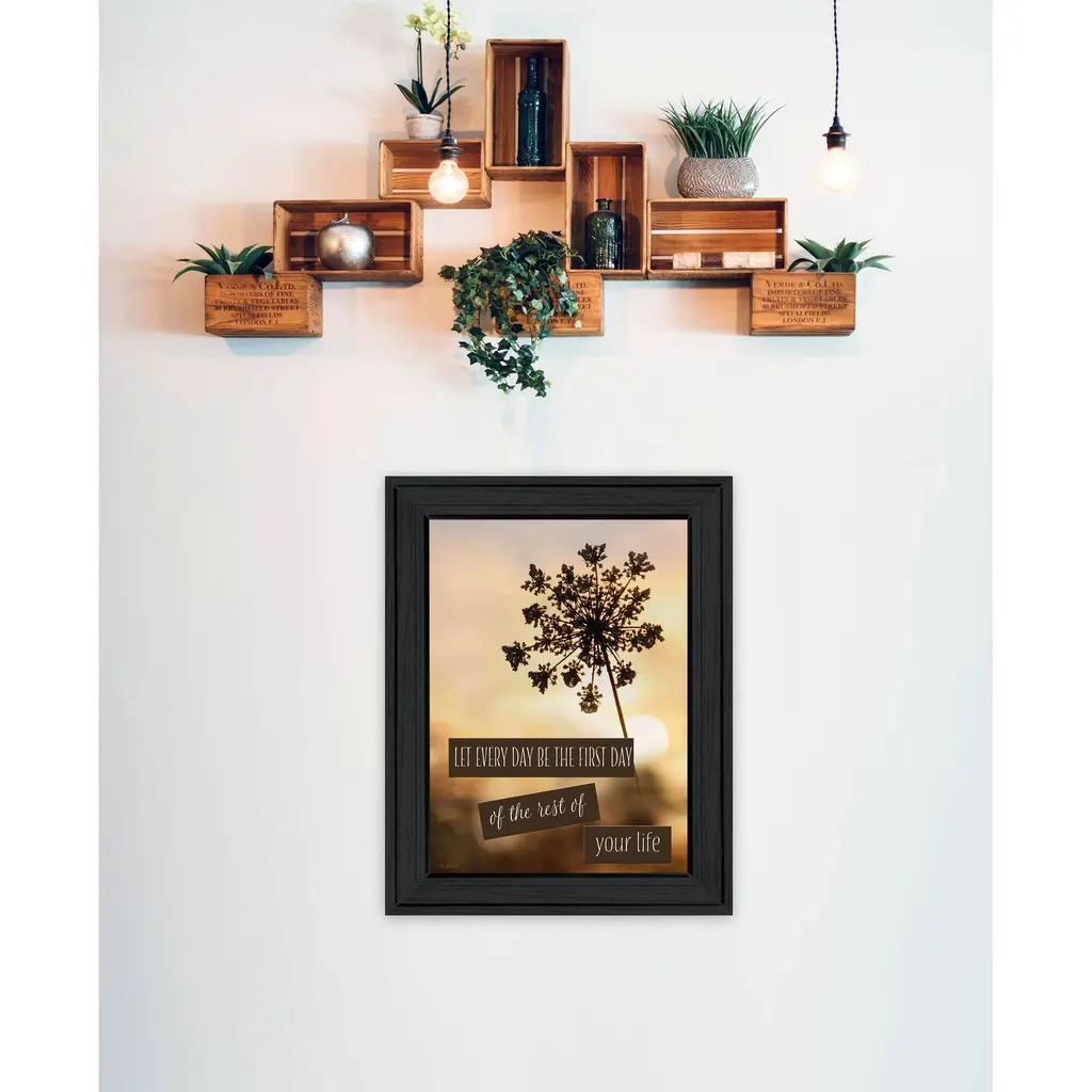 "The First Day" is by Artisan Lori Deiter. This features a framed wall art. Perfect quote that grabs your attention "let everyday be the first day of the rest of your life." Our products are proudly made by skilled American workers. The surface of our framed art is textured with a fade resistant coating, so no glass is necessary. A vegetable-based glue is used in the production of our products, and our frames are crafted from 100% recycled material, in keeping with our environmentally friendly approach toward manufacturing. Arrives ready to hang. Crafted with utmost care and precision by skilled American crafters, this artwork is a testament to their unwavering commitment to quality. Each brushstroke exudes passion and dedication, bringing the scene to life in vivid detail. The fade-resistant texture coating ensures that the vibrant colors will remain intact, preserving the canvas-like appearance for years to come. Investing in a piece that is truly one-of-a-kind. No other artwork can capture the same blend of tranquility, elegance, and wanderlust. It is a testament to your discerning taste and appreciation for the beauty that nature and art can conjure together. Brought to you by Continents Apart.