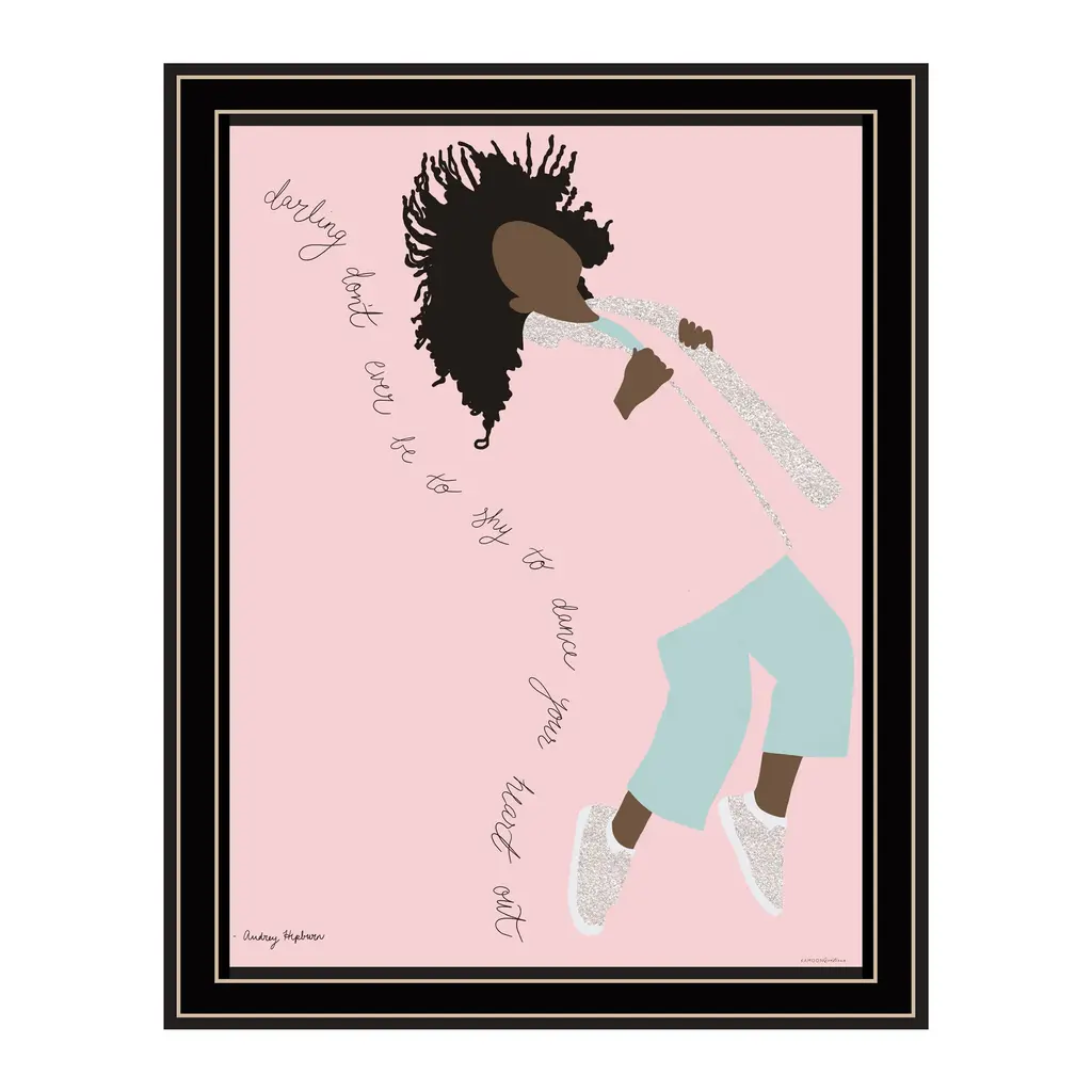 "Dance Your Heart Out" is by Artisan Kamdon Kreations. This features a framed wall art. Darling don't ever be to shy to dance your heart out! Our products are proudly made by skilled American workers. The surface of our framed art is textured with a fade resistant coating, so no glass is necessary. A vegetable-based glue is used in the production of our products, and our frames are crafted from 100% recycled material, in keeping with our environmentally friendly approach toward manufacturing. Arrives ready to hang. Crafted with utmost care and precision by skilled American crafters, this artwork is a testament to their unwavering commitment to quality. Each brushstroke exudes passion and dedication, bringing the scene to life in vivid detail. The fade-resistant texture coating ensures that the vibrant colors will remain intact, preserving the canvas-like appearance for years to come. Investing in a piece that is truly one-of-a-kind. No other artwork can capture the same blend of tranquility, elegance, and wanderlust. It is a testament to your discerning taste and appreciation for the beauty that nature and art can conjure together. Brought to you by Continents Apart.