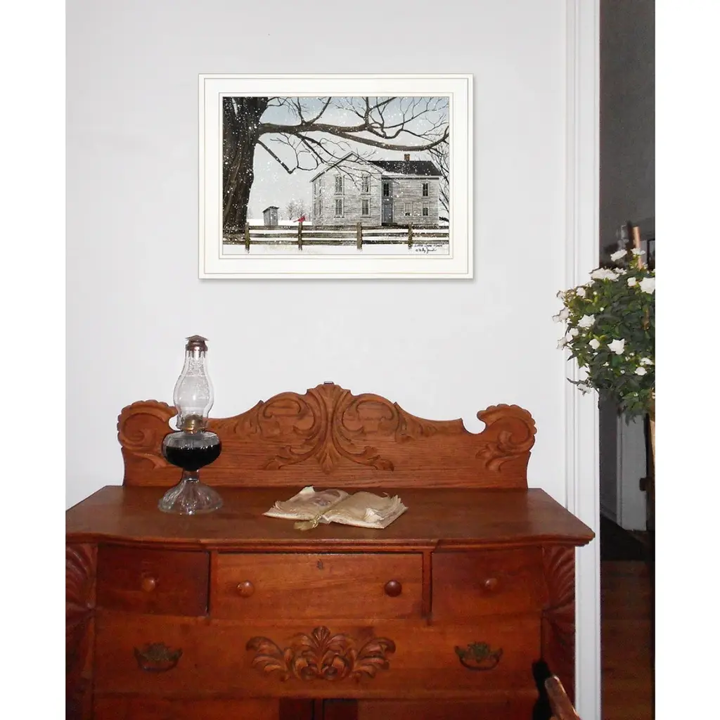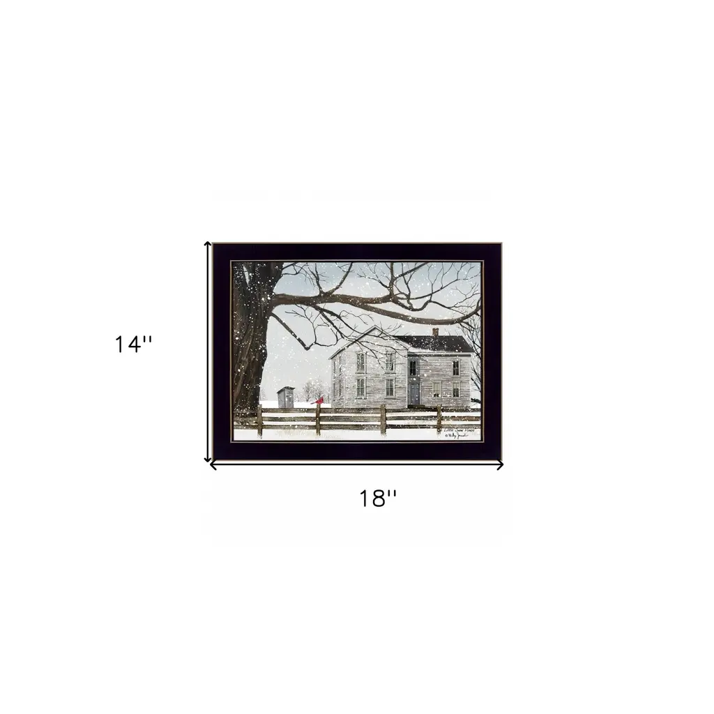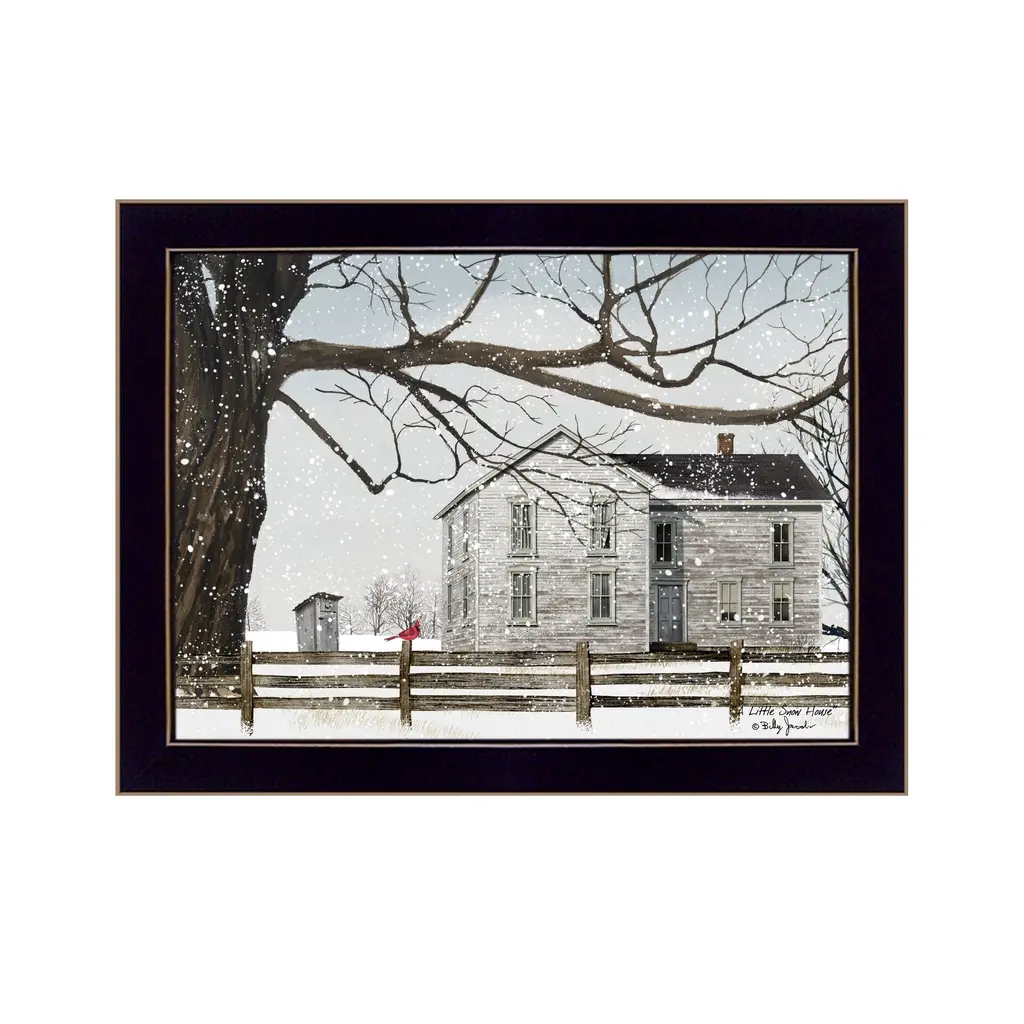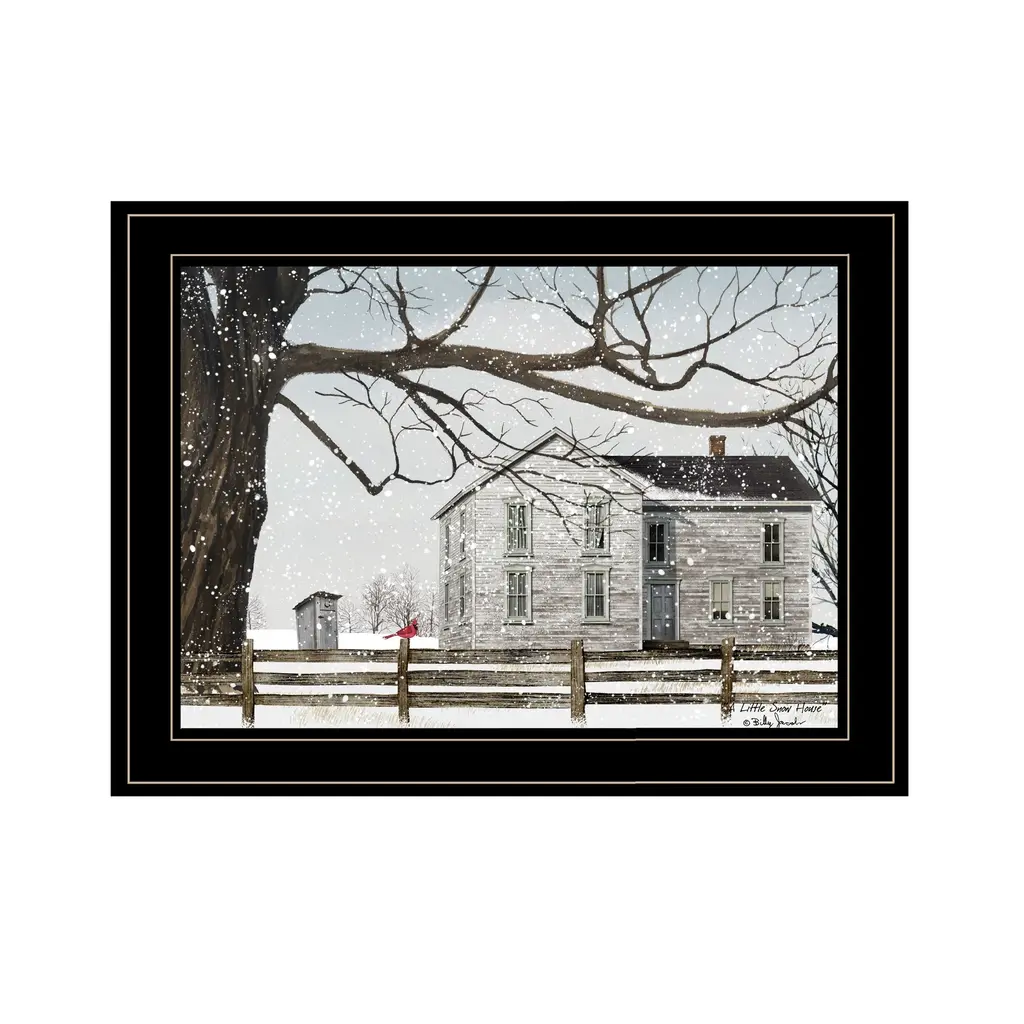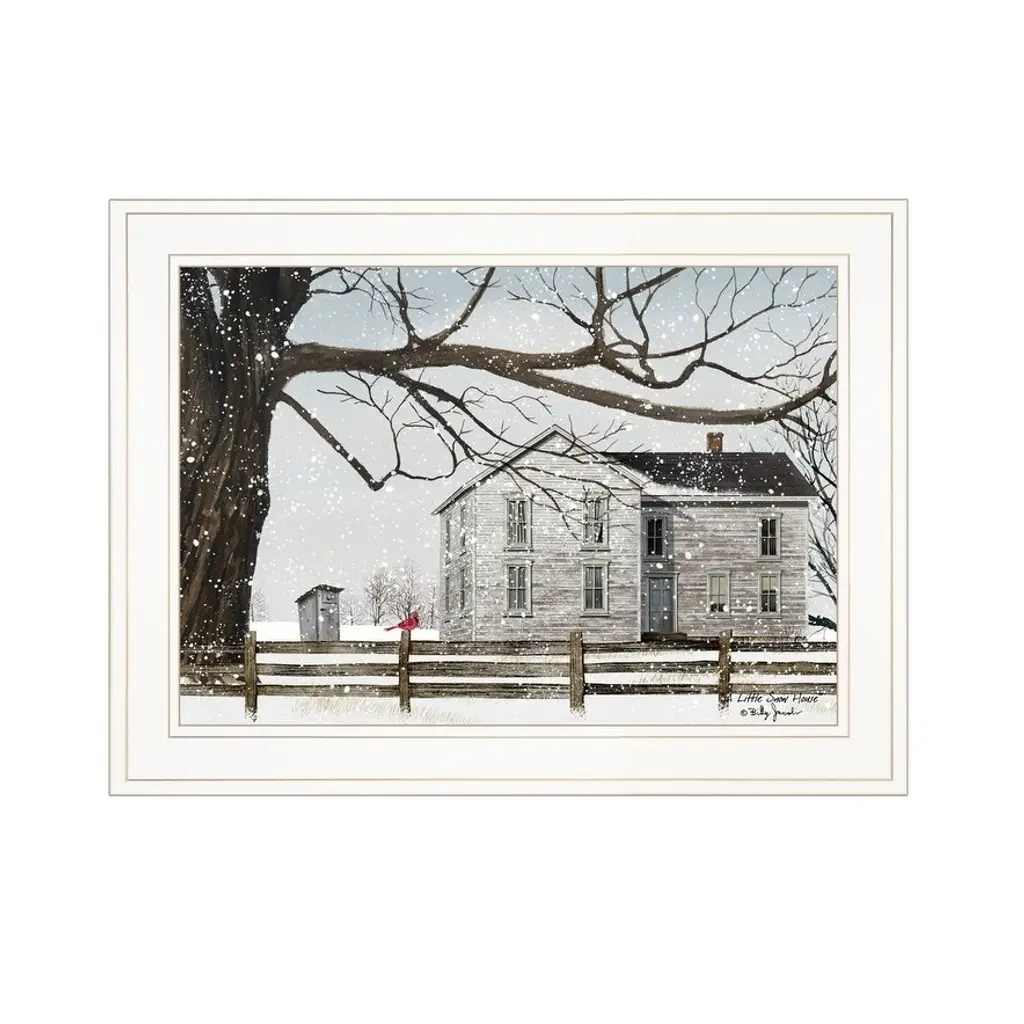 Trendydecor4u Farmhouse "A Little Snow House" Framed Print Wall Art By Billy Jacobs - Winter Color - 15 X 19 - White