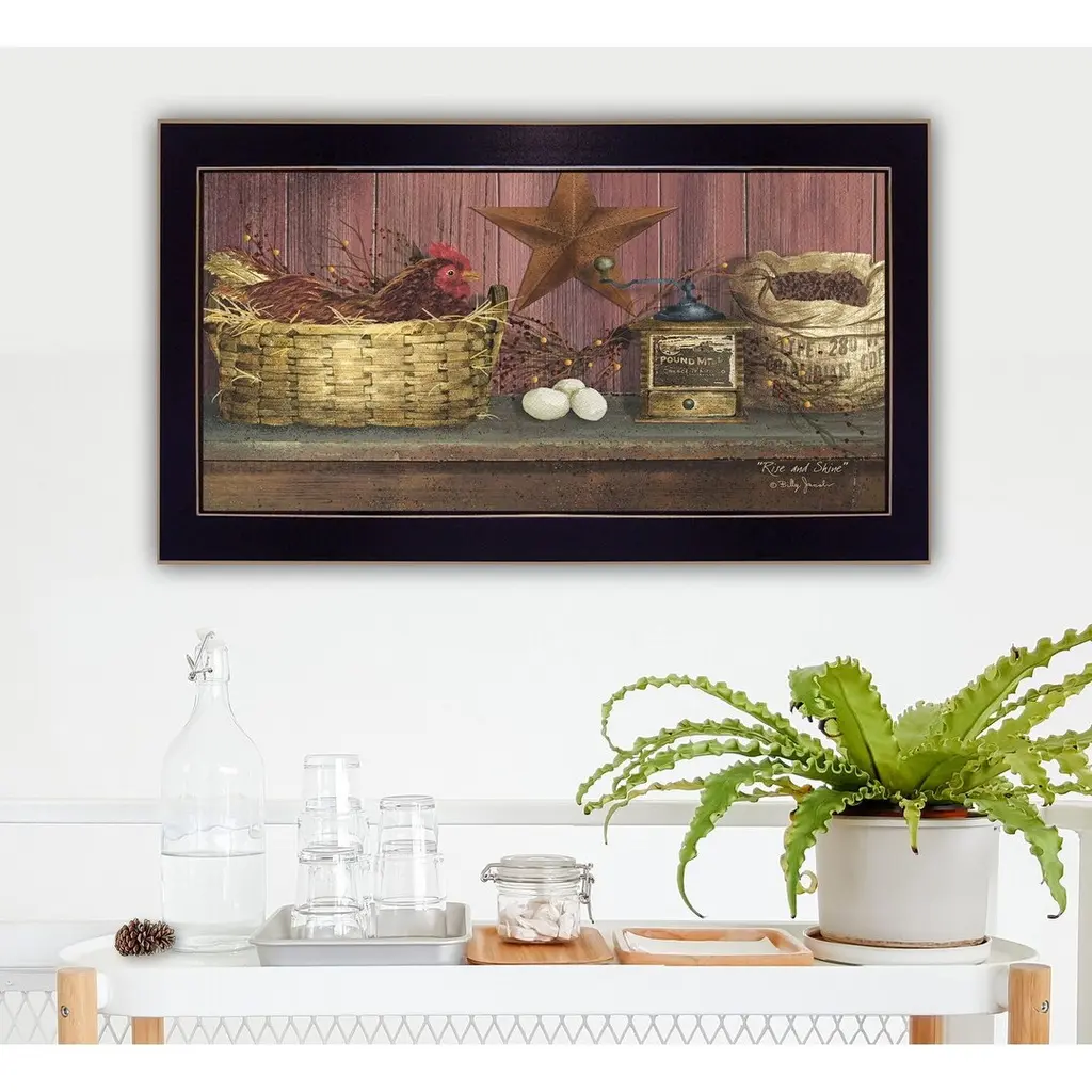 Trendydecor4u Farmhouse "Rise And Shine" Framed Print Wall Art By Billy Jacobs - Wood - Black