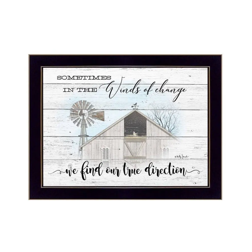 Trendydecor4u Farmhouse "Winds Of Change" Framed Print Wall Art By Billy Jacobs - Brown, Tan, White, Blue, Gray, Green White - Black