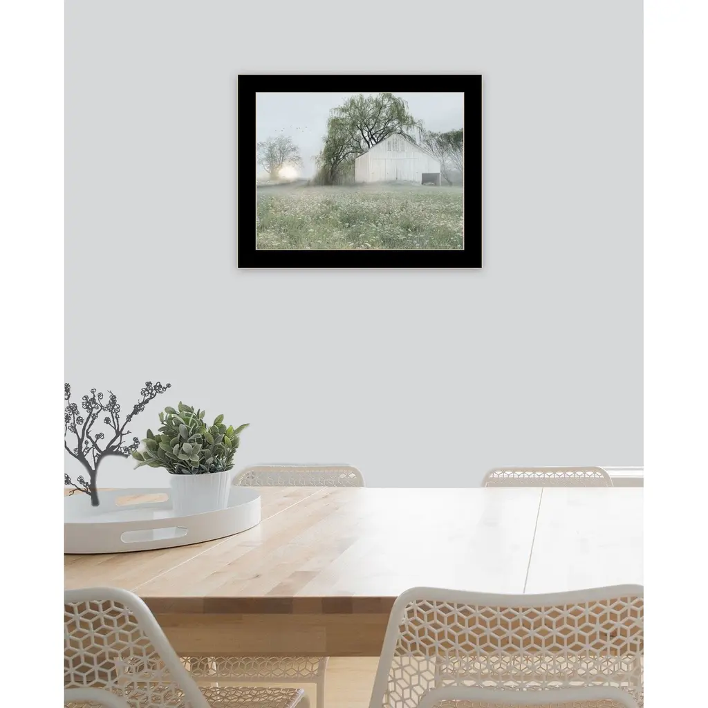 Trendydecor4u "Green Country Morning" Framed Print Wall Art - Black