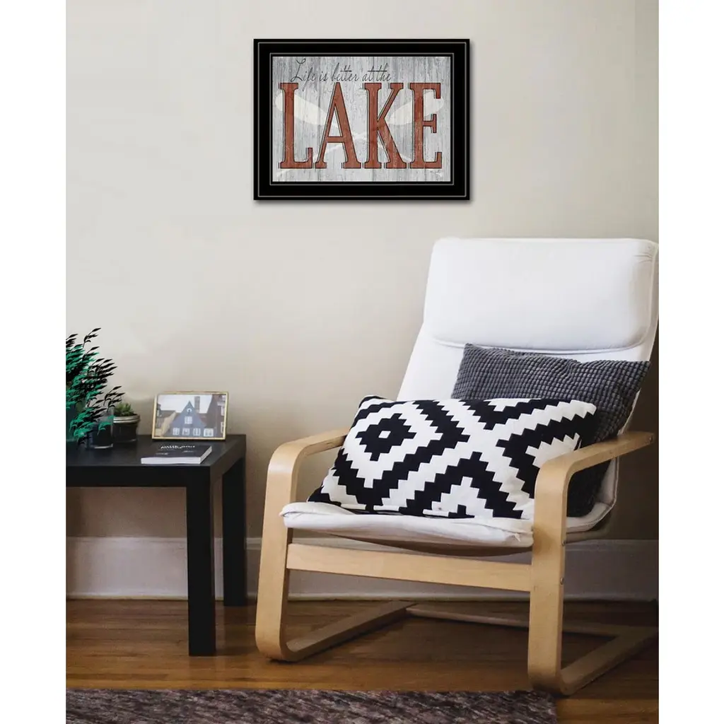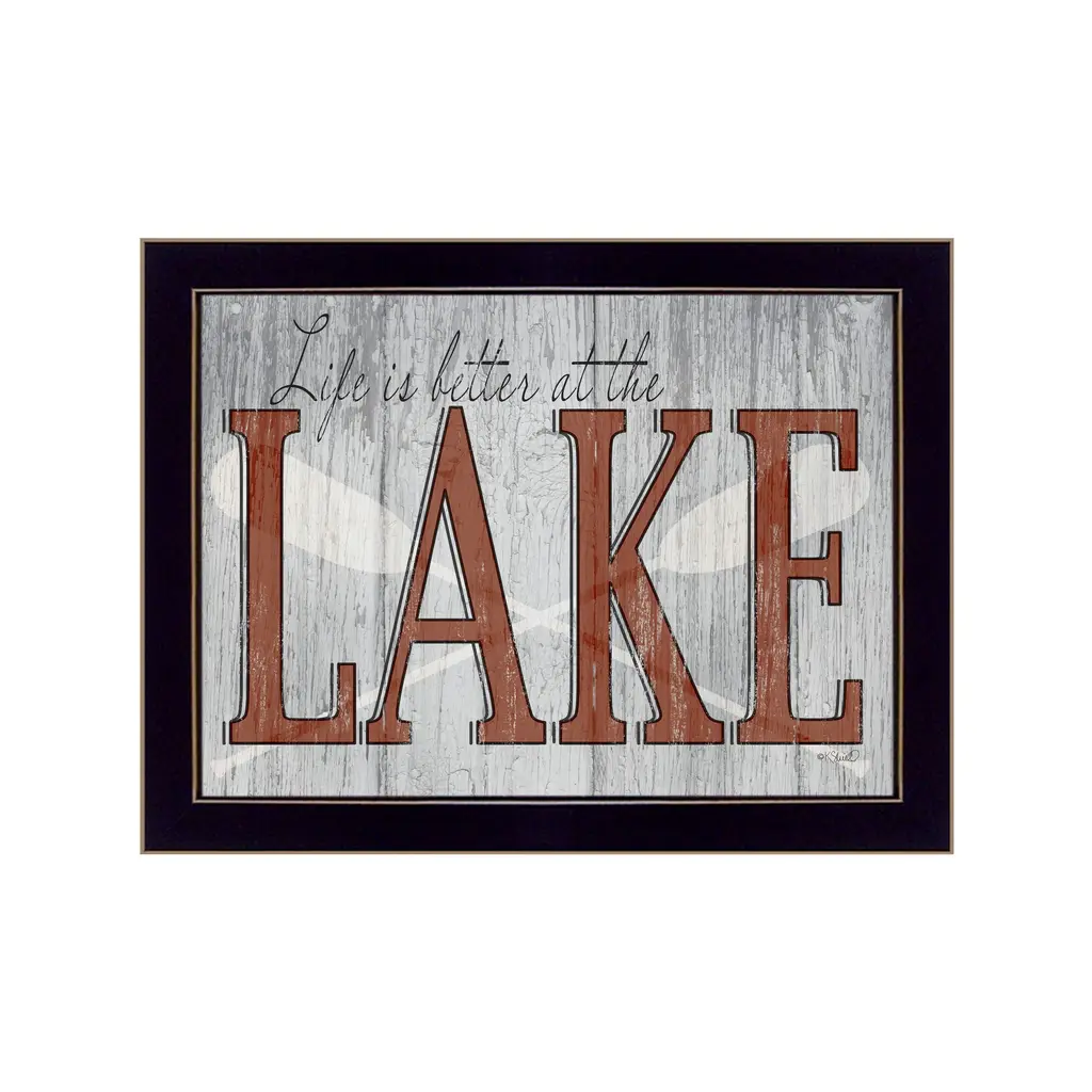 "Life is Better at the Lake" is by Artisan Kate Sherrill. This decorative framed wall art. This decorative lake décor is a must have for any lake house. The script reads "Life is Better at the Lake" and is printed on top of a wooden style background while two oars rest across each other. Our products are proudly made by skilled American workers. The surface of our framed art is textured with a fade resistant coating, so no glass is necessary. A vegetable-based glue is used in the production of our products, and our frames are crafted from 100% recycled material. In keeping with our environmentally friendly approach towards manufacturing. Arrives ready to hang.
