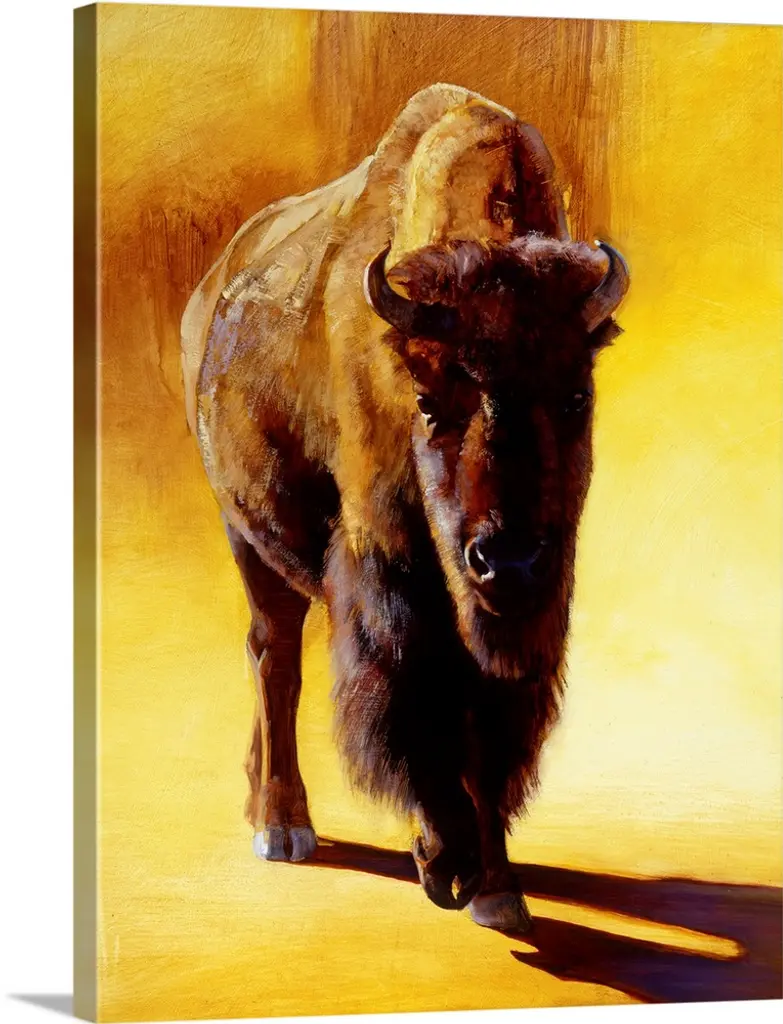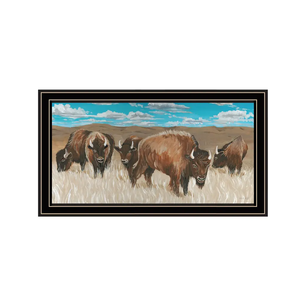 "The Boss! Bison Only" is by Artisan Cindy Jacobs. This framed wall art features Bison - The beast of the wild west! They roam the plains, and endure the hardships. Our products are proudly made by skilled American workers. The surface of our framed art is textured with a fade resistant coating, so no glass is necessary. A vegetable-based glue is used in the production of our products, and our frames are crafted from 100% recycled material, in keeping with our environmentally friendly approach toward manufacturing. Arrives ready to hang. Crafted with utmost care and precision by skilled American crafters, this artwork is a testament to their unwavering commitment to quality. Each brushstroke exudes passion and dedication, bringing the scene to life in vivid detail. The fade-resistant texture coating ensures that the vibrant colors will remain intact, preserving the canvas-like appearance for years to come. Investing in a piece that is truly one-of-a-kind. No other artwork can capture the same blend of tranquility, elegance, and wanderlust. It is a testament to your discerning taste and appreciation for the beauty that nature and art can conjure together. Brought to you by Continents Apart.