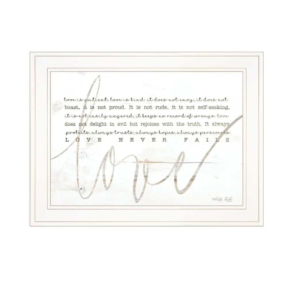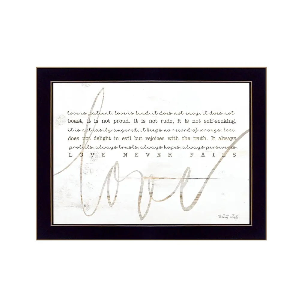 Trendydecor4u Traditional "Love Never Fails" Framed Print Wall Art By Cindy Jacobs - White, Tan, Black - 14 X 18 - Black