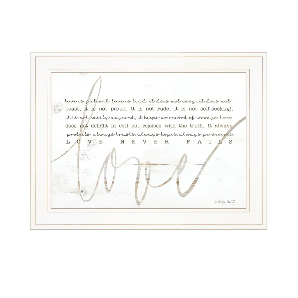 Trendydecor4u Traditional "Love Never Fails" Framed Print Wall Art By Cindy Jacobs - White, Tan, Black - 15 X 19 - White