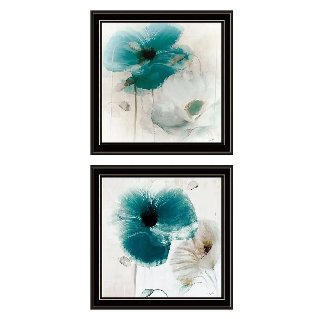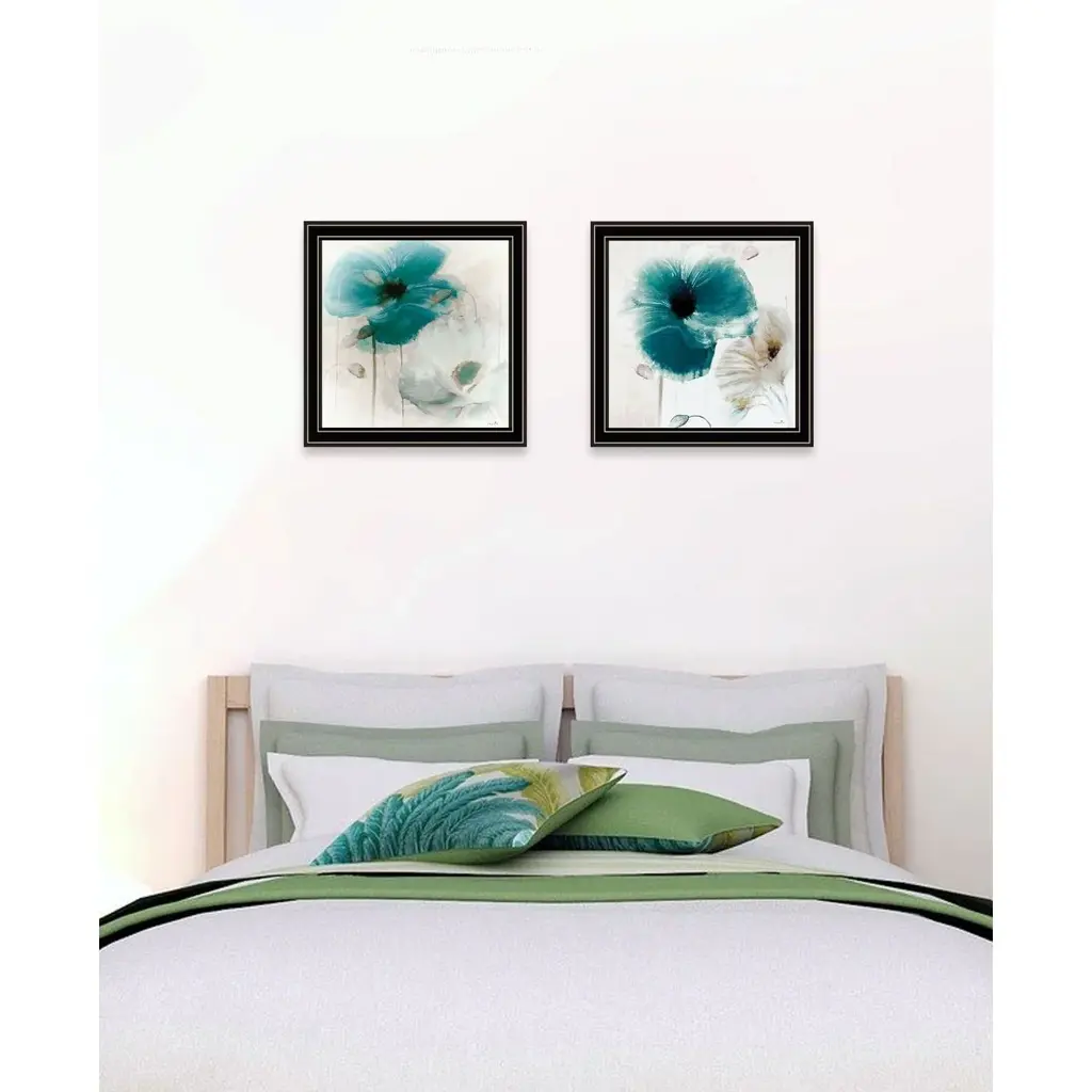 "Poppy Collection" Vignette is by Artisan Sophie 6. This set of vignette features a faded white and gray background. The teal and white flower with the flower buds making the image almost look like it is popping out of the print. Our products are proudly made by skilled American workers. The surface of our framed art is textured with a fade resistant coating, so no glass is necessary. A vegetable-based glue is used in the production of our products, and our frames are crafted from 100% recycled material. In keeping with our environmentally friendly approach towards manufacturing. Arrives ready to hang.