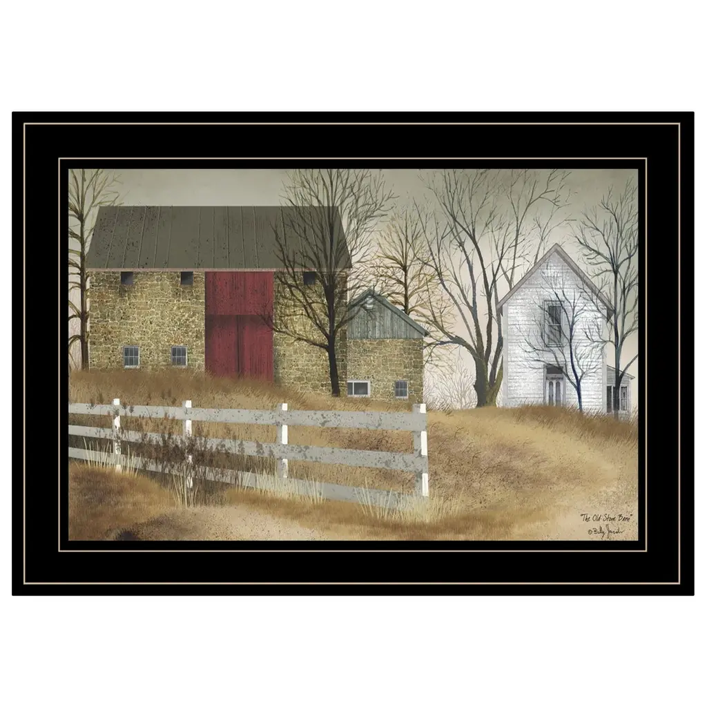 Trendydecor4u Traditional "The Old Stone Barn" Framed Print Wall Art By Billy Jacobs - Wood - Black