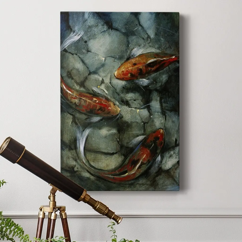 Tres Koi Ii Premium Gallery Wrapped Canvas - Ready To Hang - 24x36