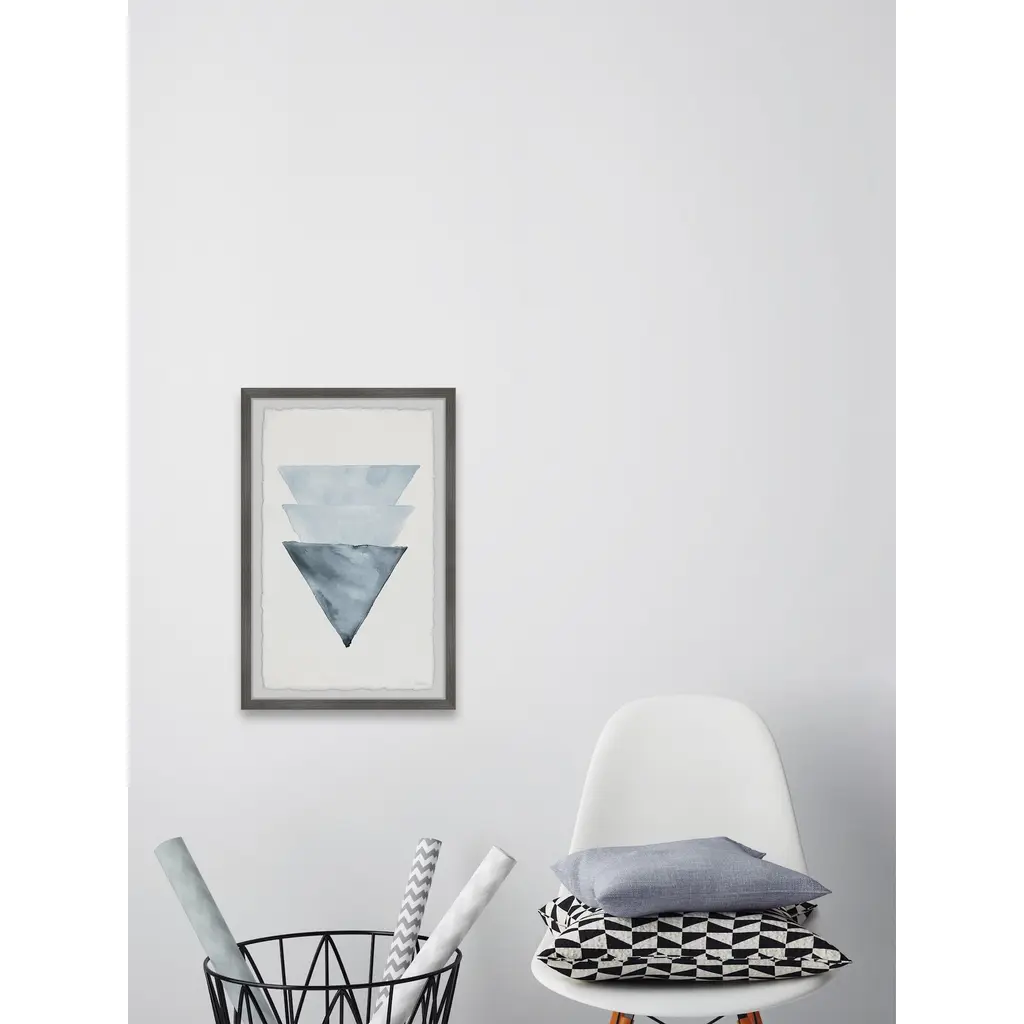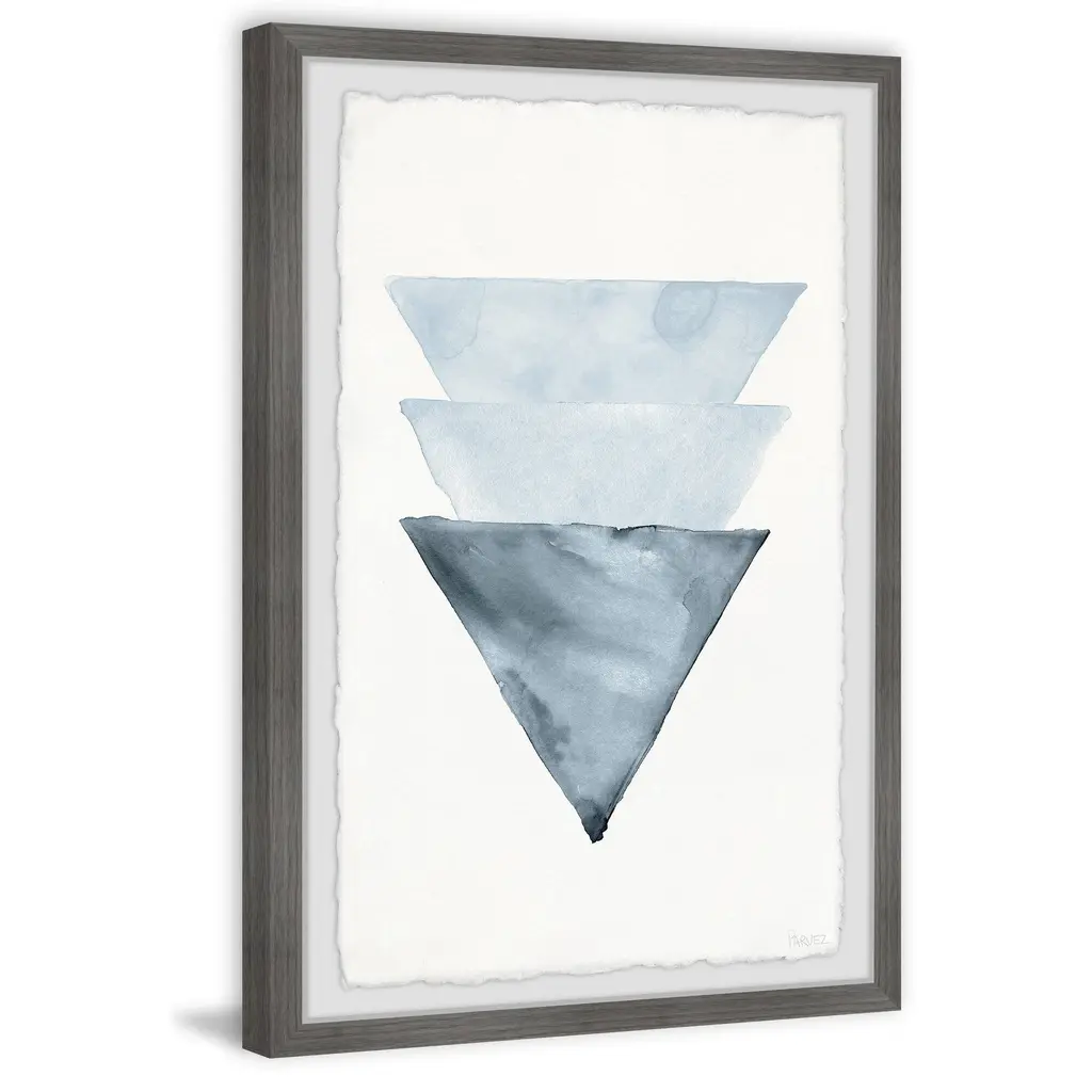 Watch as the triangle falls in slow-motion, becoming deeper in color as it practically burst from the frame. The soothing shades makes this piece a perfectly mystifying accent in any living space. Proudly printed in the USA, this piece is printed on high quality archive paper and professionally hand-framed. With wall-mounting hooks included, this artful accent is ready to hang up as soon as it reaches your front door. • Top quality Giclee print on high resolution Archive Paper • Hand cut deckled edges • High quality durable non-warping frame • Finished under shatter resistant plexiglass • Arrives ready to hang • Includes a certificate of authenticity • Printed in the USA • Artist signature on the front