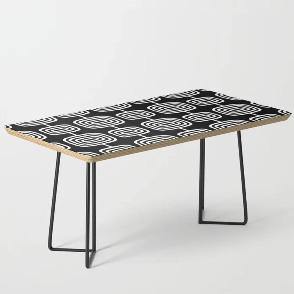 35.75" x 17.75" x 17" (H)Baltic birch table top with beveled edgeHigh quality print with satin finishSteel legs available in black or goldAssembly requiredEvery order is made just for youSHIPPING: Items are made to order and typically ship within 3-4 business days. Click here for more information about delivery options.Furniture sales are final. Click here for more information on returns.