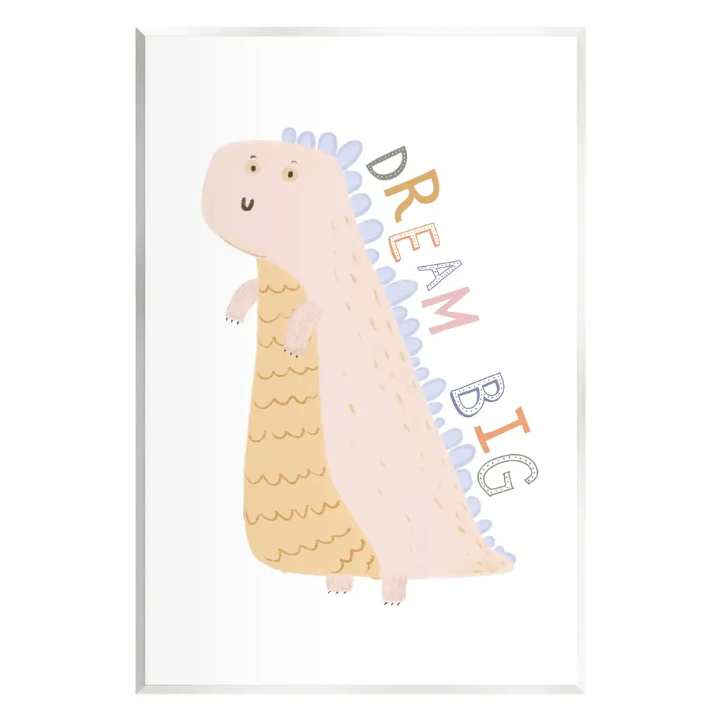 Our Triceratops Wall Art Print roars with personality, thanks to the charming illustration and lettering style. A simple white matte and natural wood frame lend a clean, modern look while showing off the giclee print's vibrant colors. Alone or in a grid with other prints from our dinosaur series, it's the perfect wall art for any child who's reached their Jurassic age.
