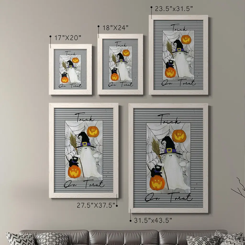Trick Or Treat Ghost-Premium Framed Canvas - Ready To Hang - 31.5x43.5 - Grey