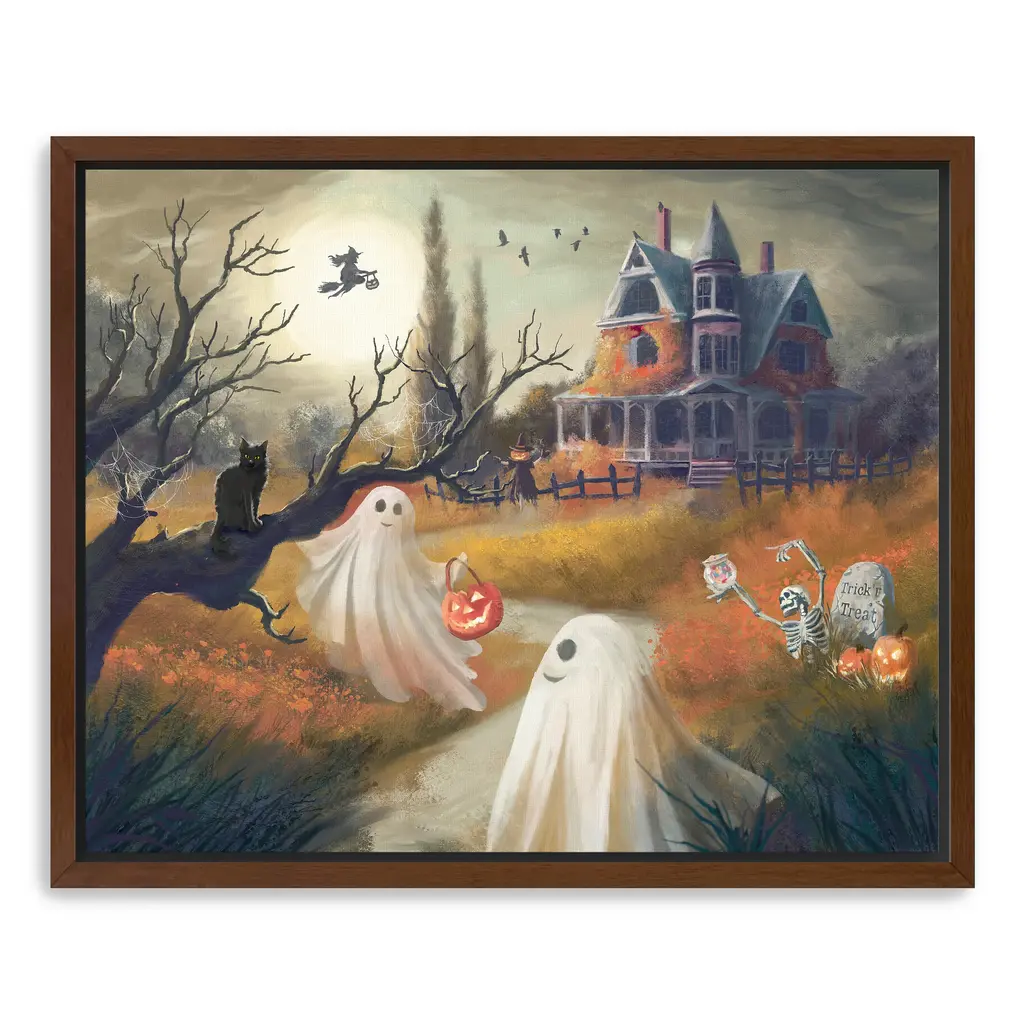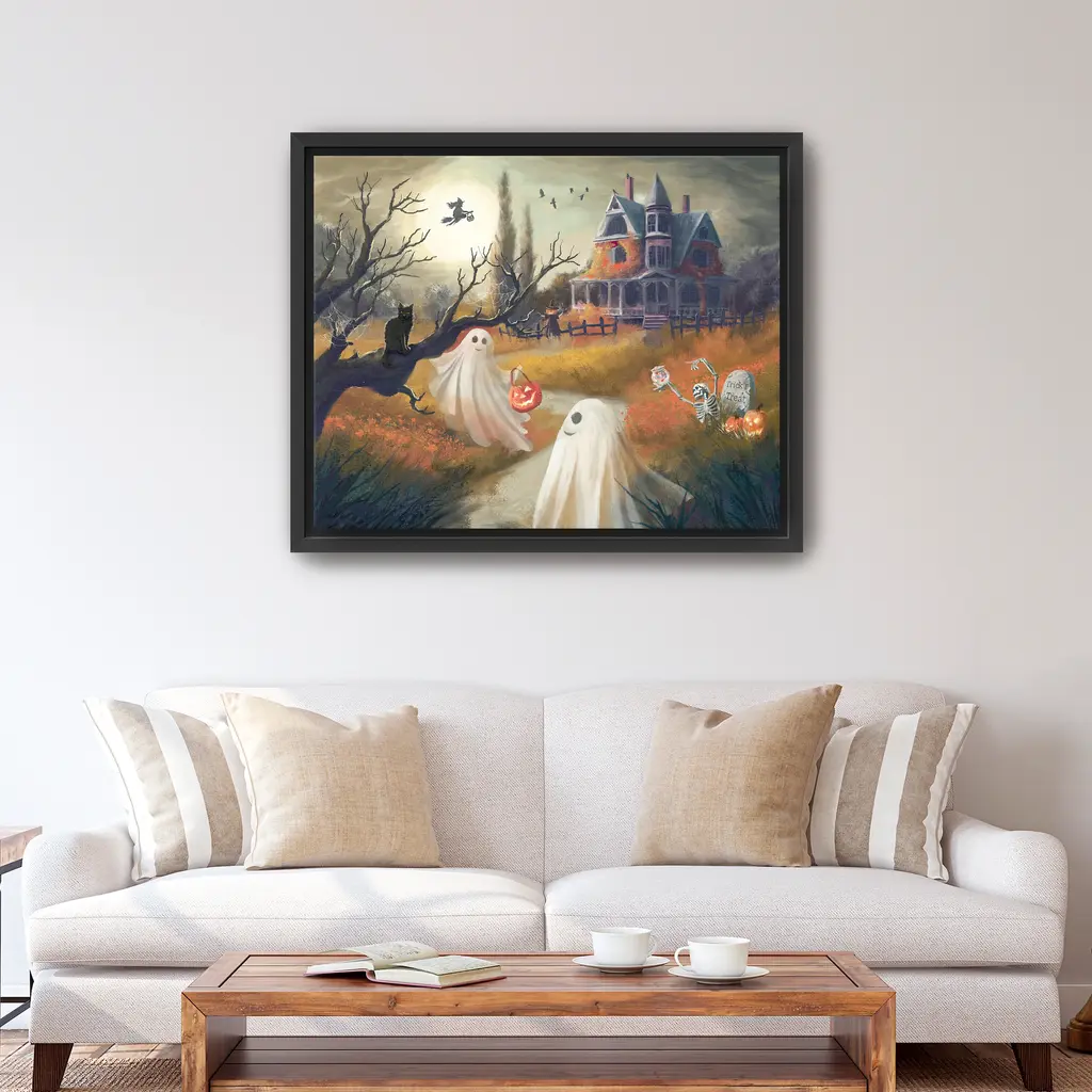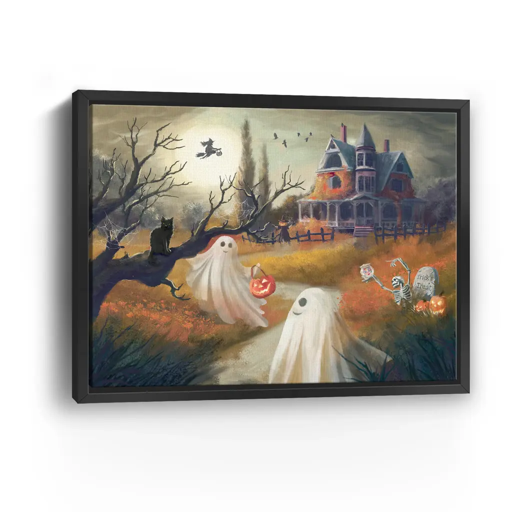 Trick Or Treat Old House Canvas Giclee - Framed / Black / 16x20