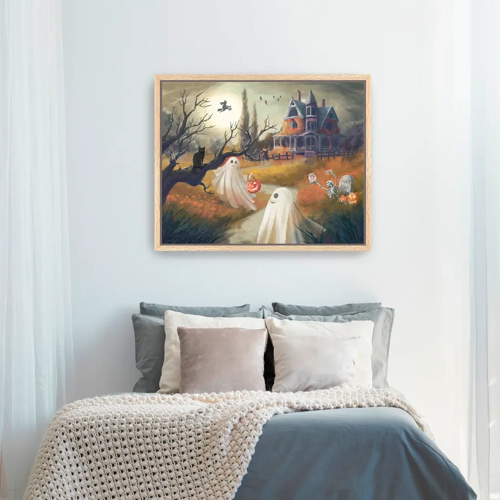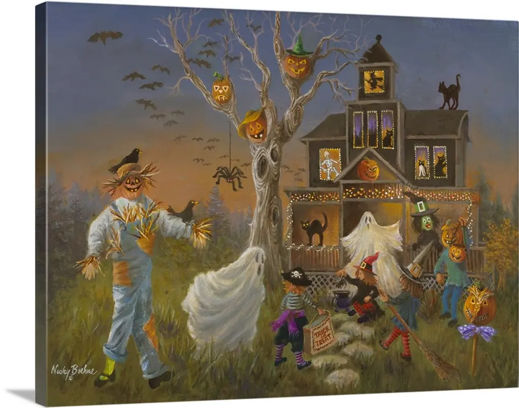 Trick Or Treat Old House Canvas Giclee - Framed / Black / 24x30