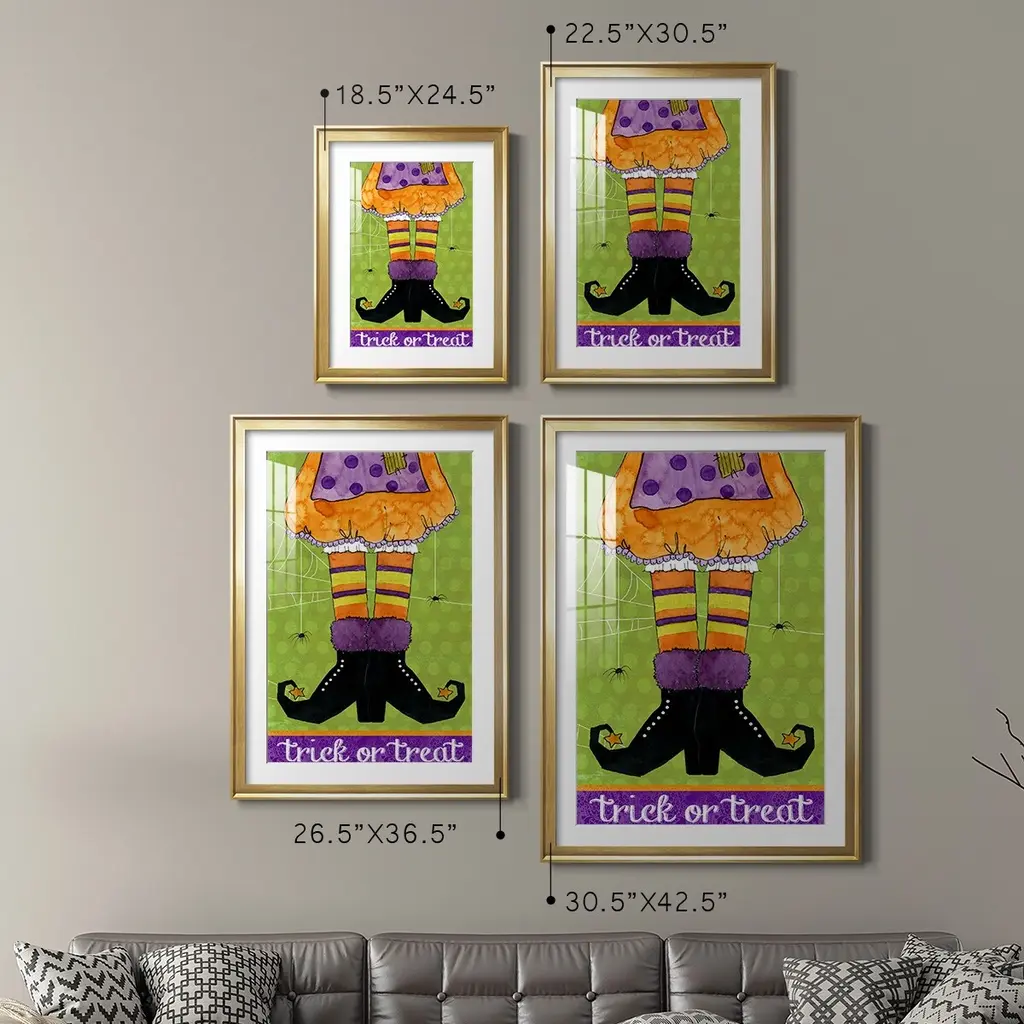 Trick or Treat Premium Framed Print - Ready to Hang A Premium Framed Print created to last. Framed in distressed wood and available in an array of sizes and colors Featuring a beveled a solid wood stretcher bar, each piece comes ready to hand 4 SIZES AVAILABLE 30.5''X42.5'' - Overall Size 26.5'X36.5'' - Overall Size 22.5''x30.5'' - Overall Size 18.5''x24.5'' - Overall Size Each piece is made to order. Each piece comes with hanging hardware. Made in the USA Ready to Hang Giclee Paper Print Acrylic Glass Beveled Matt Board