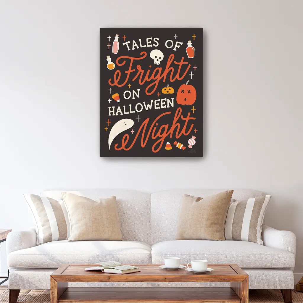 With vintage charm and spectral styling, this typographic art captures the essence of All Hallows' Eve. Perfect for setting a spine-chilling tone. Our Gallery Wrap Canvas Prints are proudly assembled with high quality materials in California, USA. Each piece is printed on a thick, archival grade canvas using Giclee technology. It is then hand-stretched by our experienced artisans over solid wood bars, which will not warp over time. The final product is a piece personally crafted for you to confidently display on your wall. Care and Assembly: Ensure that the location of your piece has little to no exposure to heat, sunlight, and moisture. Wipe clean, only if needed. Each piece includes a sawtooth hanger to hang on your wall vertically.