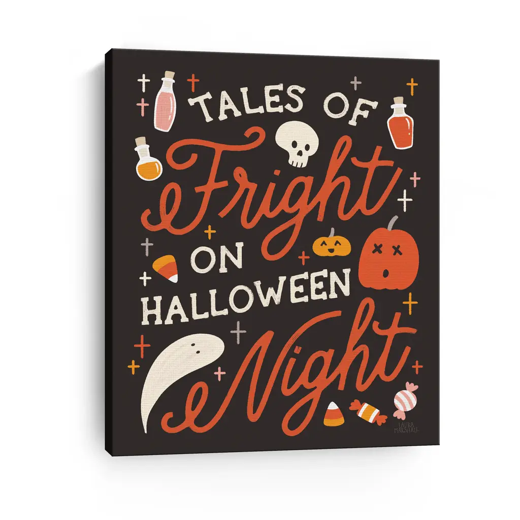 With vintage charm and spectral styling, this typographic art captures the essence of All Hallows' Eve. Perfect for setting a spine-chilling tone. Our Gallery Wrap Canvas Prints are proudly assembled with high quality materials in California, USA. Each piece is printed on a thick, archival grade canvas using Giclee technology. It is then hand-stretched by our experienced artisans over solid wood bars, which will not warp over time. The final product is a piece personally crafted for you to confidently display on your wall. Care and Assembly: Ensure that the location of your piece has little to no exposure to heat, sunlight, and moisture. Wipe clean, only if needed. Each piece includes a sawtooth hanger to hang on your wall vertically.