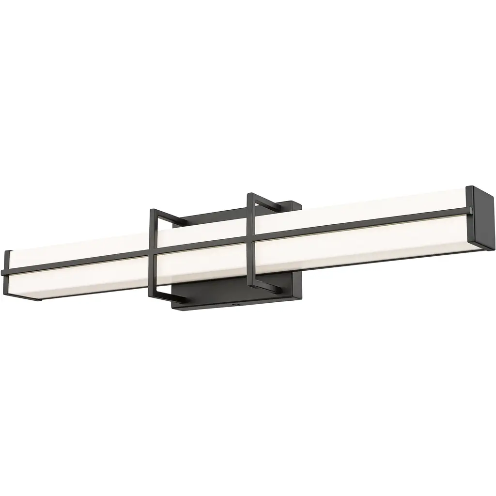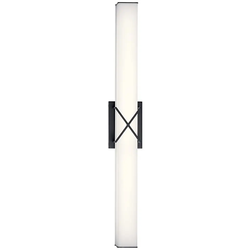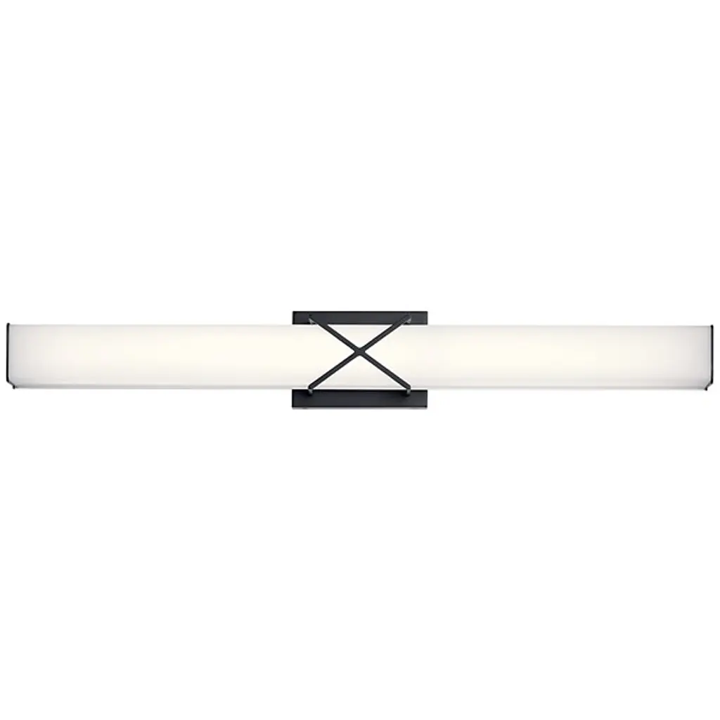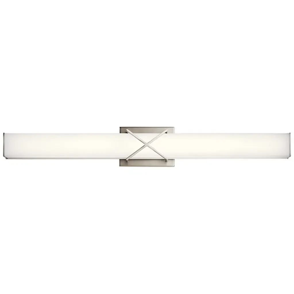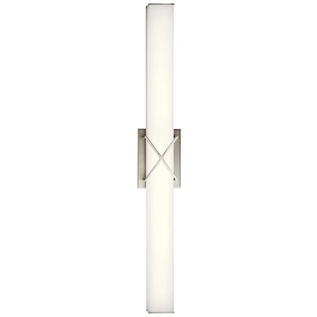 The Trinsic LED Vanity Light by Kichler conveys a subtle elegance with its long Satin Etched White glass shade and thin Polished Chrome trimming. The shade’s seamless construction allows for a soft, even ambiance as light simultaneously reflects off the wall plate’s extended cross pattern. This intricate, but low-profile piece works especially well in contemporary bathroom settings, where its light can be as functional as it is pleasant.