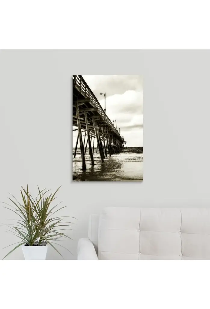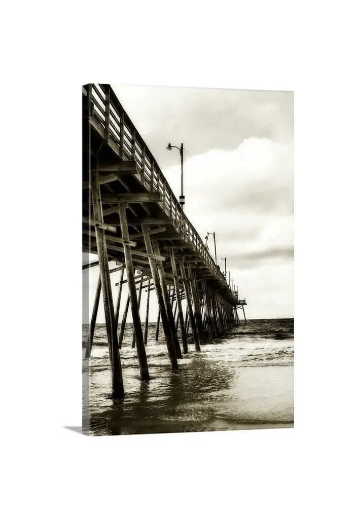 Gallery-Wrapped Canvas entitled 'Triple S Pier II'. Old "Triple S" pier 2. Multiple sizes available. Primary colors within this image include: Black, Light Gray, White. Made in the USA. All products come with a 365 day workmanship guarantee. Inks used are latex-based and designed to last. Canvas is a 65% polyester, 35% cotton base, with two acrylic latex primer basecoats and a semi-gloss inkjet receptive topcoat. Canvases are stretched across a 1.5 inch thick wooden frame with easy-to-mount hanging hardware.