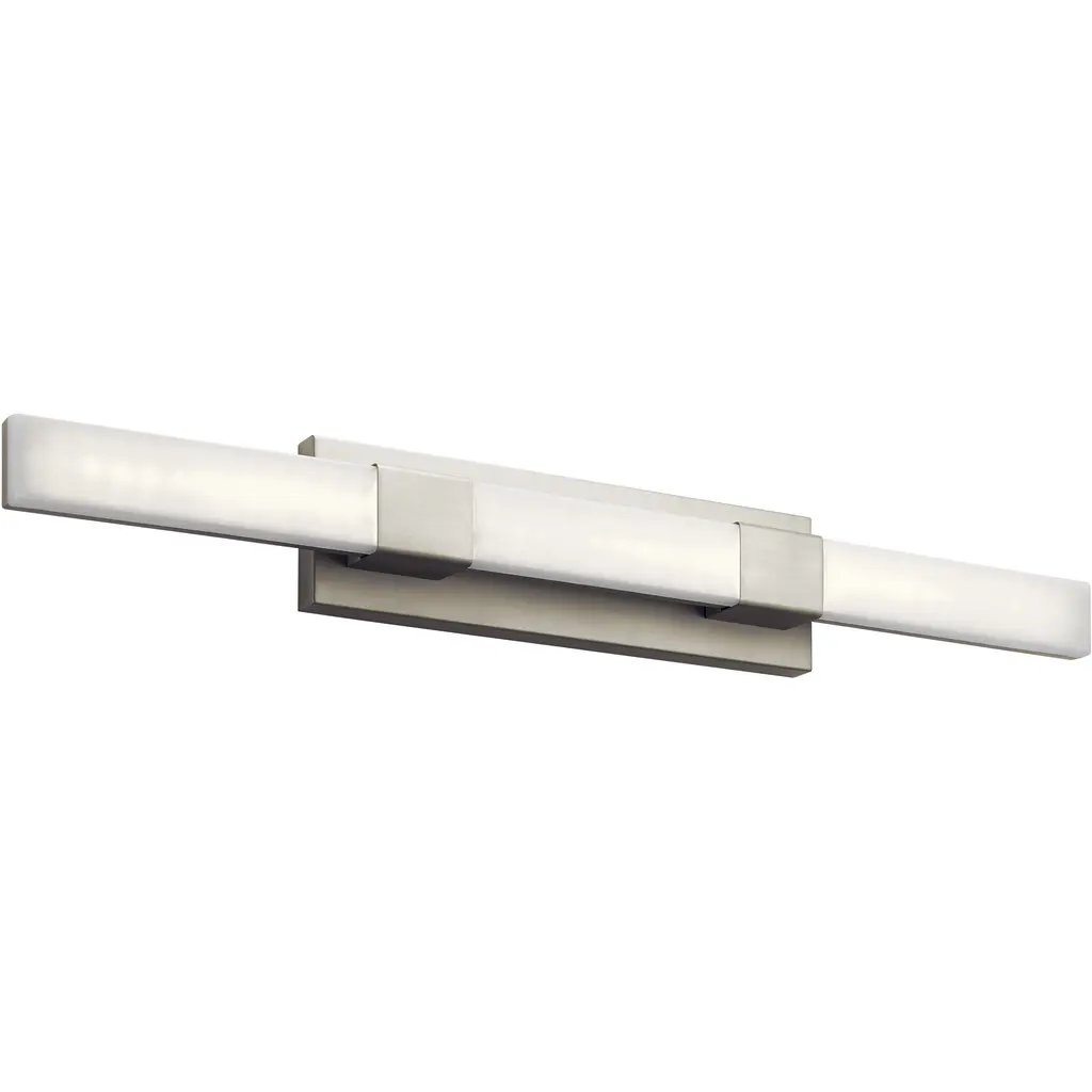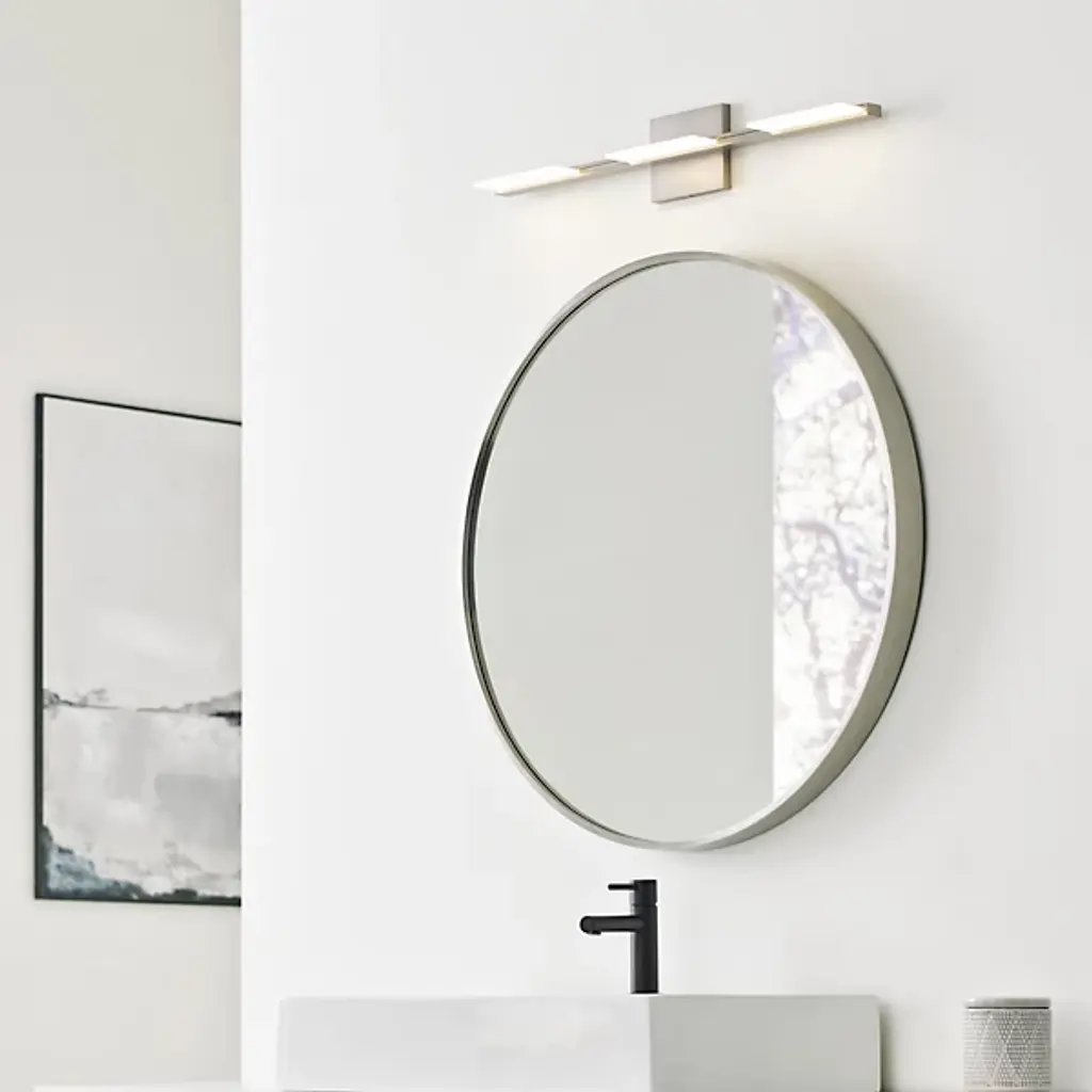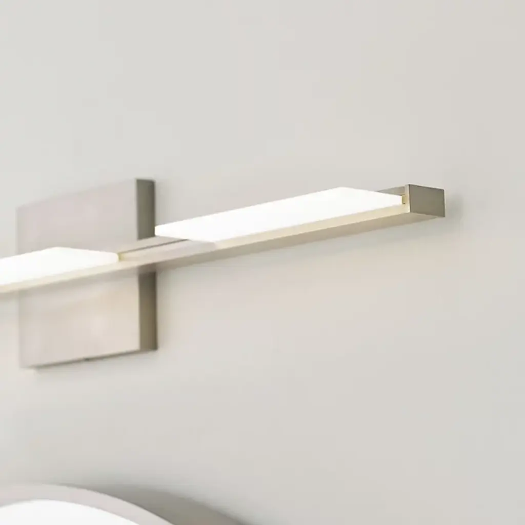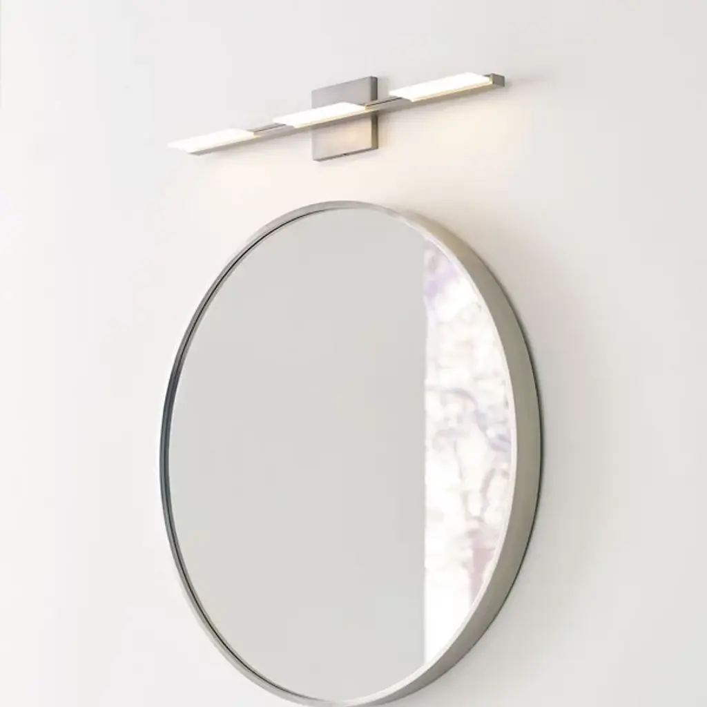 The Tris LED Vanity Light 277v from Visual Comfort Modern, formerly known as Tech Lighting, sets a sophisticated tone with crisp, radiant shapes, featuring LED light guide technology. The bath bar’s clean layout of pure shapes gives it a place in the modern and contemporary setting. It proves efficient in space as it mounts to the wall with a compact, low-profile backplate. The backplate’s mounting options let the piece serve as a flanking pair or a topping element to the mirror. It adds a sharp accent through its linear metal crossbar. Frosted glass panels shoot out to create an attractive side profile silhouette. Integrated LED light guide technology evenly coats the glass, giving the bathroom a uniform spread of clean illumination.