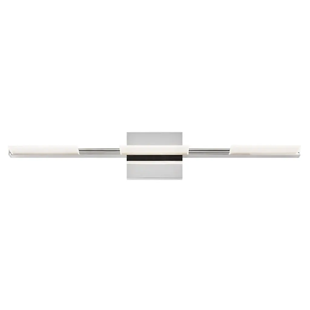 The Tris LED Vanity Light 277v from Visual Comfort Modern, formerly known as Tech Lighting, sets a sophisticated tone with crisp, radiant shapes, featuring LED light guide technology. The bath bar’s clean layout of pure shapes gives it a place in the modern and contemporary setting. It proves efficient in space as it mounts to the wall with a compact, low-profile backplate. The backplate’s mounting options let the piece serve as a flanking pair or a topping element to the mirror. It adds a sharp accent through its linear metal crossbar. Frosted glass panels shoot out to create an attractive side profile silhouette. Integrated LED light guide technology evenly coats the glass, giving the bathroom a uniform spread of clean illumination.