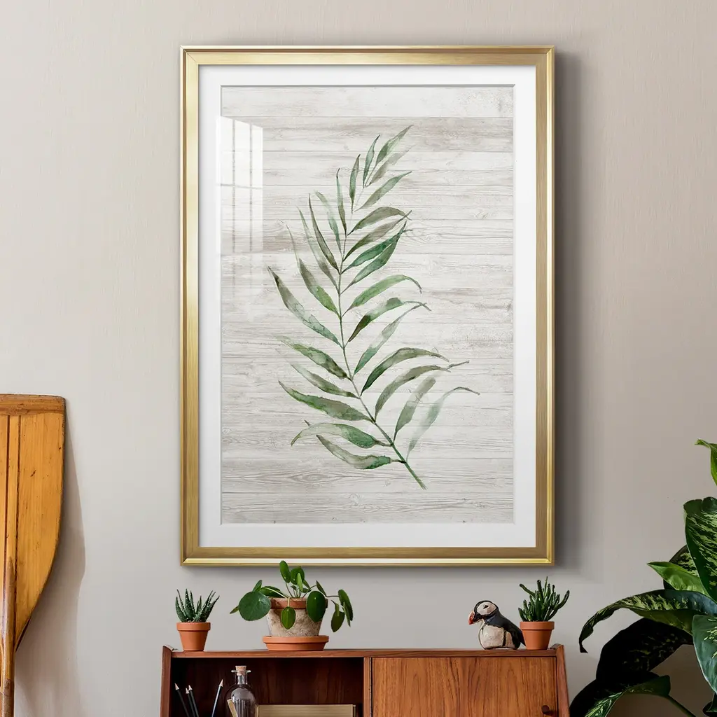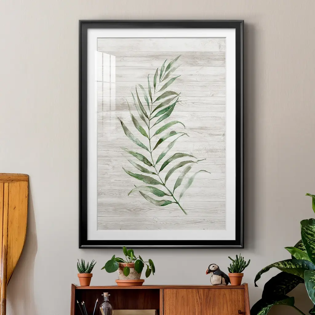 Tropic Frond I Premium Framed Print - Ready to Hang A Premium Framed Print created to last. Framed in distressed wood and available in an array of sizes and colors Featuring a beveled a solid wood stretcher bar, each piece comes ready to hand 4 SIZES AVAILABLE 30.5''X42.5'' - Overall Size 26.5'X36.5'' - Overall Size 22.5''x30.5'' - Overall Size 18.5''x24.5'' - Overall Size Each piece is made to order. Each piece comes with hanging hardware. Made in the USA Ready to Hang Giclee Paper Print Acrylic Glass Beveled Matt Board