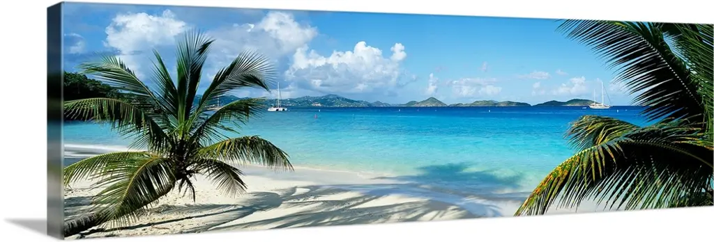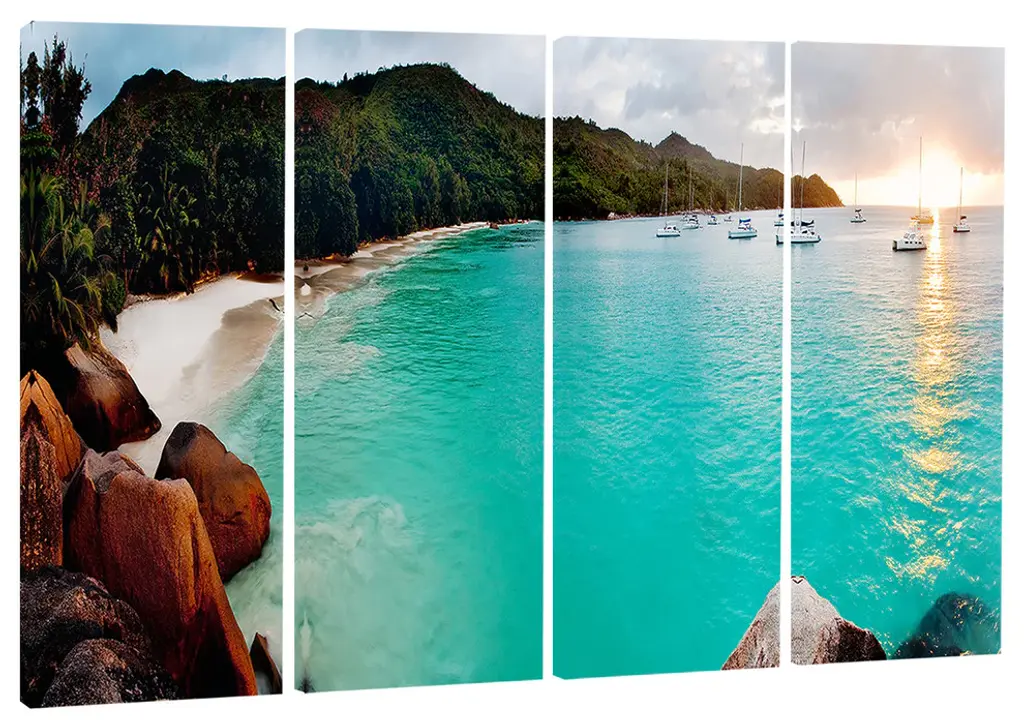 "Tropical Beach With Blue Waters" Canvas Print, 4 Panels