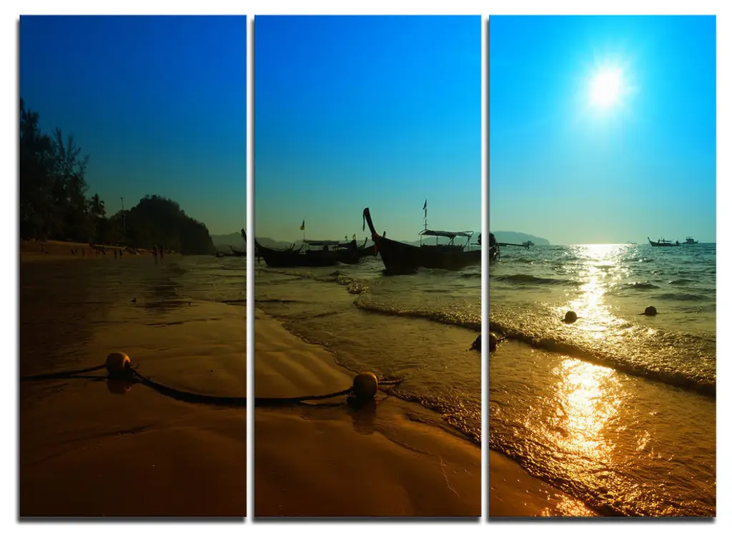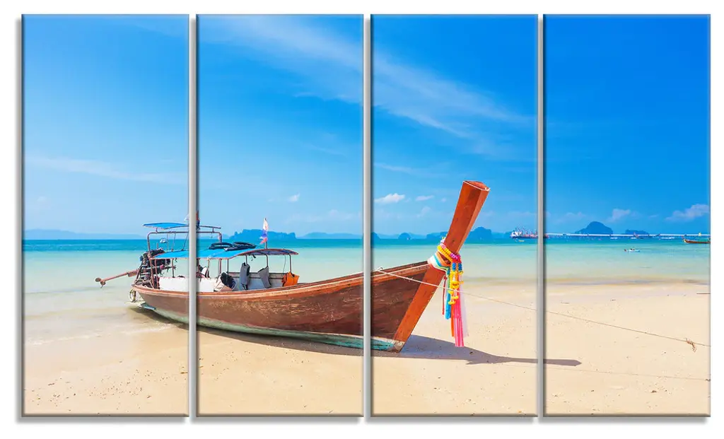 "Tropical Beach With Boat" Photo Metal Wall Art, 3 Panels, 36"x28"