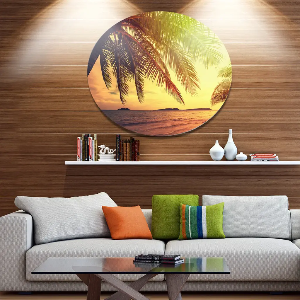 Tropical Beach With Green Palm, Seashore Round Wall Art, 23"