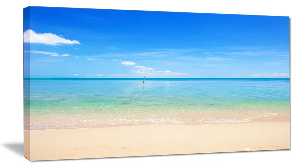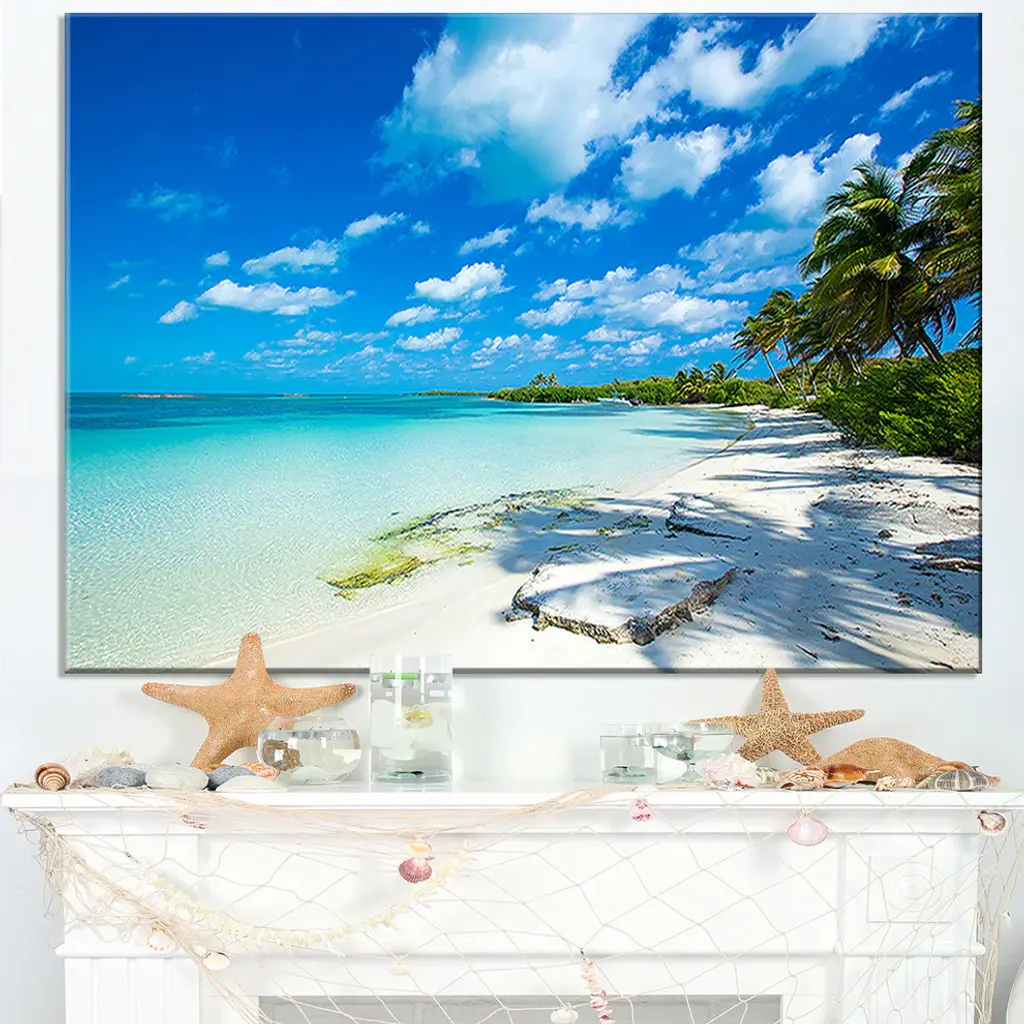 The Tropical Beach with Palm Shadows canvas art print is sure to make an impression on anyone who sees it. This artwork is gallery wrapped around a 1-inch solid wood frame and arrives carefully packaged and entirely ready to hang on the wall. Design Art only uses the highest resolution and pigments to ensure a crisp colorful print that is never faded or pixelated. This artwork is sure to be a conversation starter in any home or office.