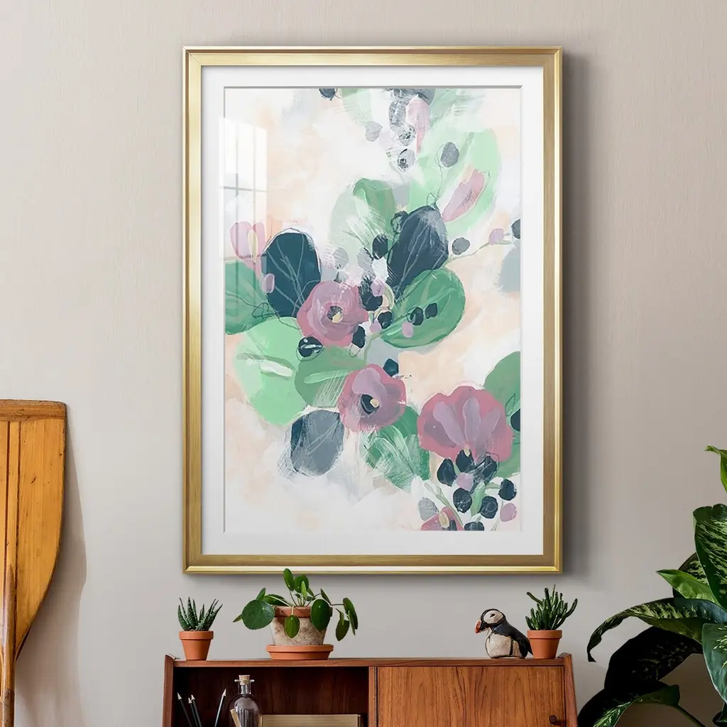 Tropical Branch Fresco I Premium Framed Print - Ready to Hang A Premium Framed Print created to last. Framed in distressed wood and available in an array of sizes and colors Featuring a beveled a solid wood stretcher bar, each piece comes ready to hand 4 SIZES AVAILABLE 30.5''X42.5'' - Overall Size 26.5'X36.5'' - Overall Size 22.5''x30.5'' - Overall Size 18.5''x24.5'' - Overall Size Each piece is made to order. Each piece comes with hanging hardware. Made in the USA Ready to Hang Giclee Paper Print Acrylic Glass Beveled Matt Board