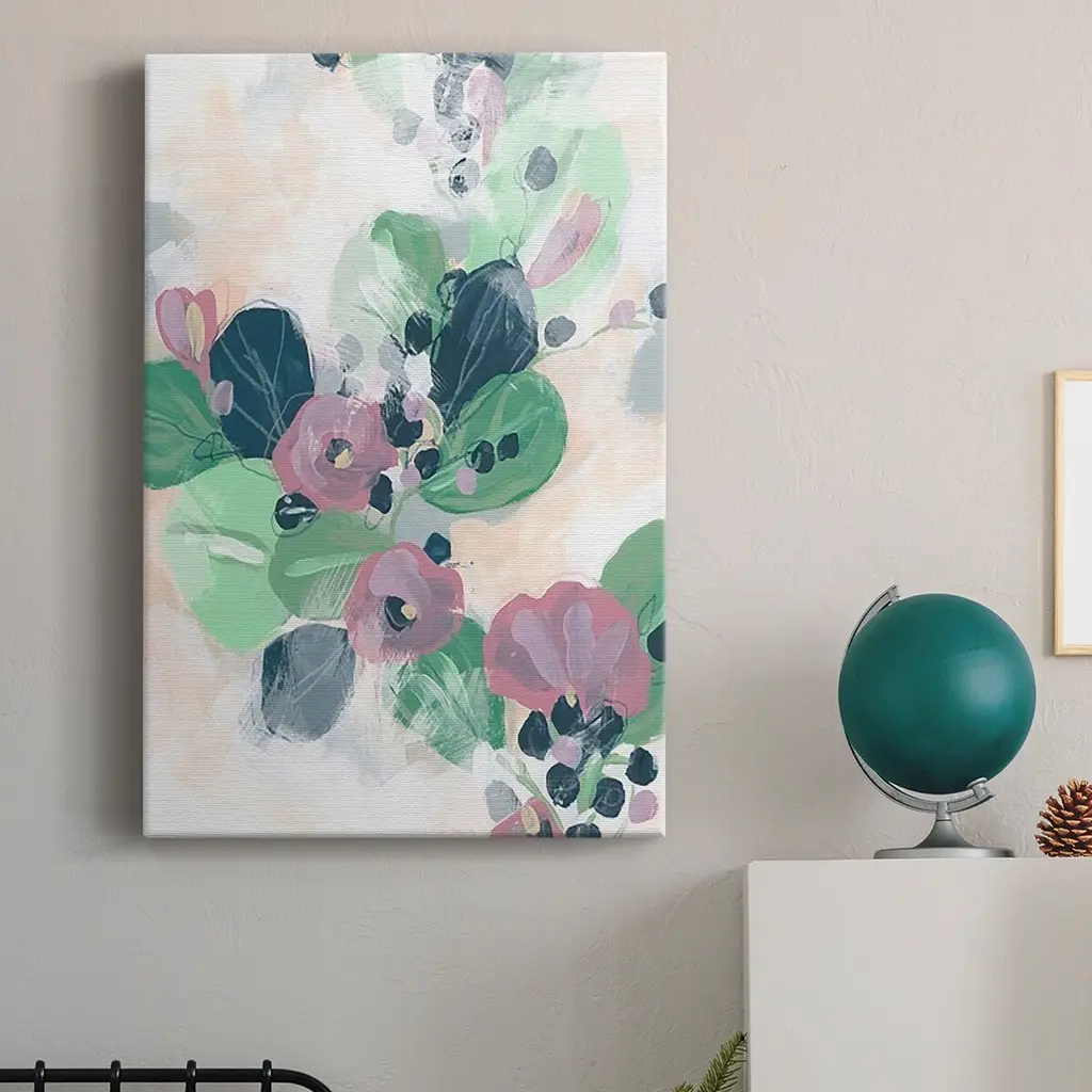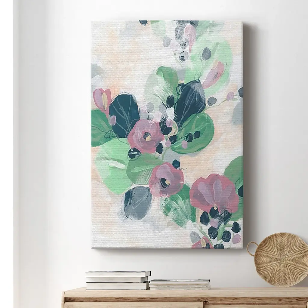 Tropical Branch Fresco I Premium Gallery Wrapped Canvas - Ready to Hang A premium hand stretched gallery wrapped canvas print created to last. Featuring a beveled a solid wood stretcher bar, each piece comes ready to hand 6 SIZES AVAILABLE 8''X12'' - Overall Size 12''X18'' - Overall Size 18''X27'' - Overall Size 24''x36'' - Overall Size 32''x48'' - Overall Size 40''x60'' - Overall Size Each piece is made to order. Built to Last Each piece comes ready to hang Solid wood stretcher Fade and Water resistant Made domestically