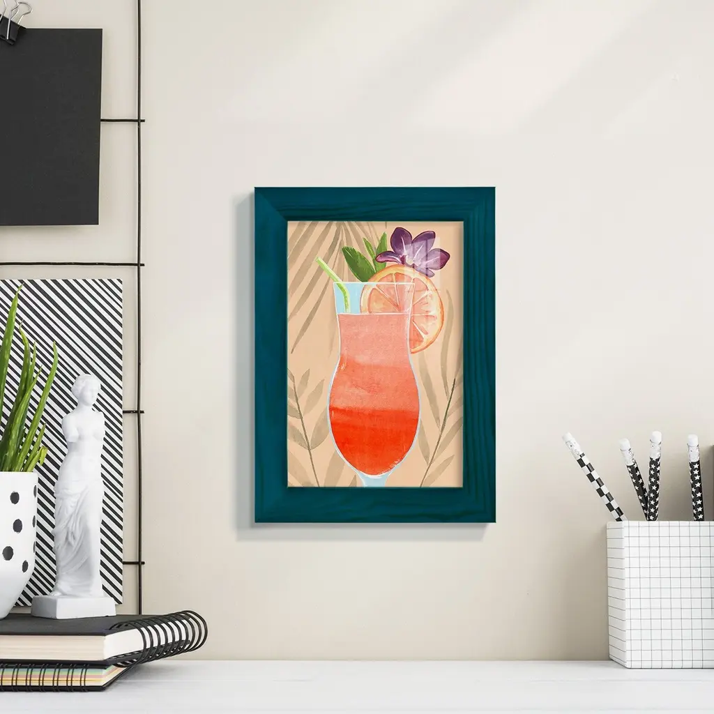 Tropical Cocktail Iii -Framed Print W/glass-Cherry Red - 12x15 - Blue