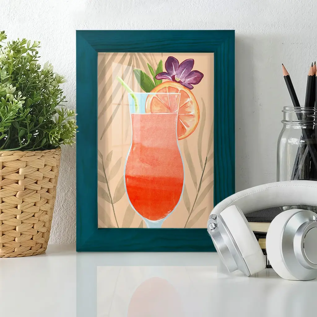 Tropical Cocktail III -EZ SWITCH Framed Print w/glass-Cherry Red A delightful, framed print. Featuring a solid wood frame with real wood glass. This premium print is giclee quality. In addition, every frame features a removable back and table top stand. This allows you to change your art in the future or to just stand the art on a table for a new look. We are sure you'll enjoy our new series of EZ SWITCH Framed Art. Solid Wood Frame Real Glass Removable / Replaceable Art Built in Tabletop Stand Sizes range from 4x6 up to 12x15 - buy just one or pair them up as sets as you see fit.