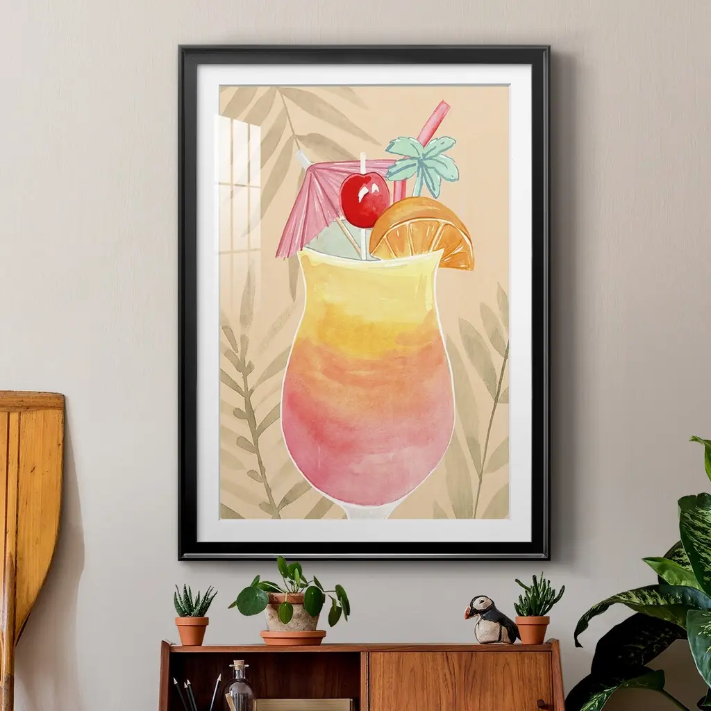 Tropical Cocktail IV Premium Framed Print - Ready to Hang A Premium Framed Print created to last. Framed in distressed wood and available in an array of sizes and colors Featuring a beveled a solid wood stretcher bar, each piece comes ready to hand 4 SIZES AVAILABLE 30.5''X42.5'' - Overall Size 26.5'X36.5'' - Overall Size 22.5''x30.5'' - Overall Size 18.5''x24.5'' - Overall Size Each piece is made to order. Each piece comes with hanging hardware. Made in the USA Ready to Hang Giclee Paper Print Acrylic Glass Beveled Matt Board